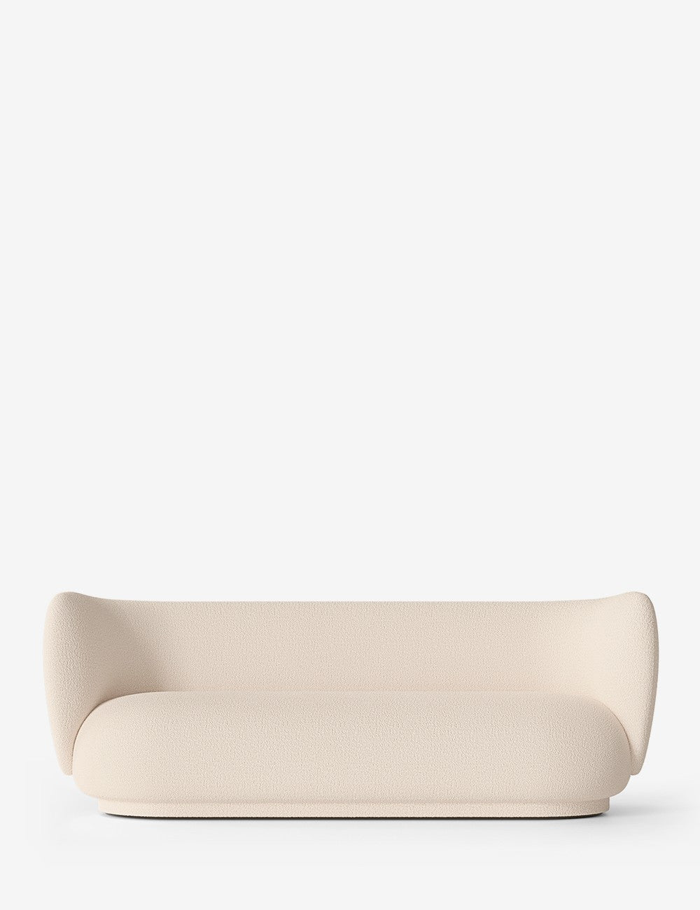 Questa versione del divano Rico è rivestita in un lussuoso e morbido bouclé, in cui la miscela di lana e cotone crea un tessuto dall'aspetto lussuoso.