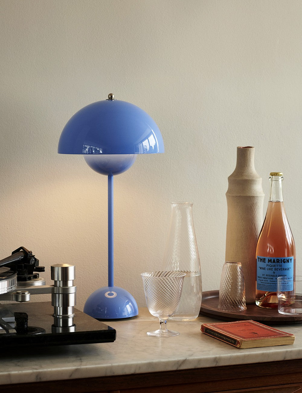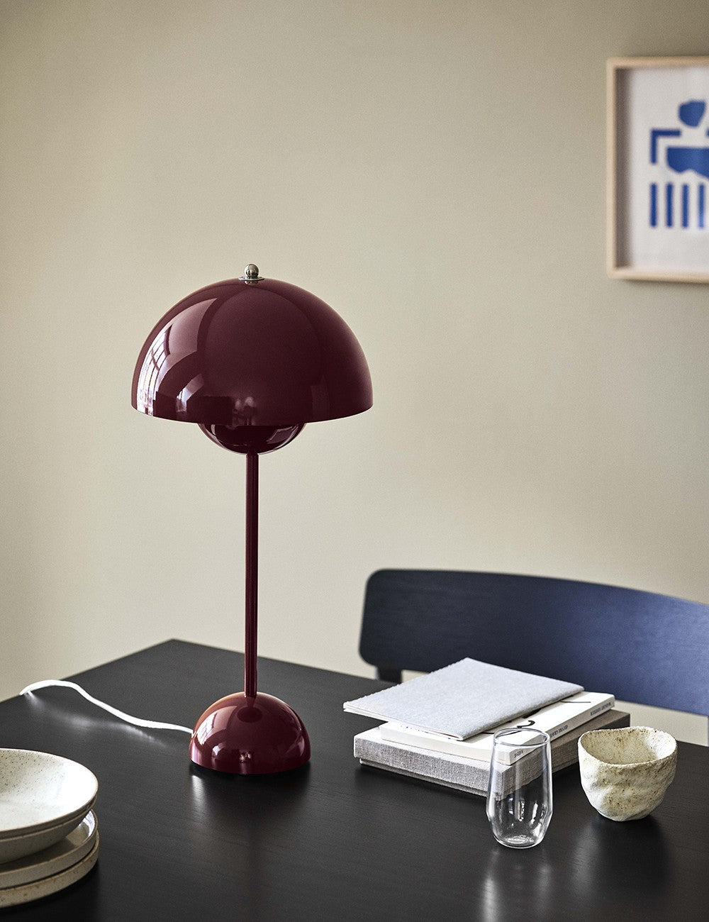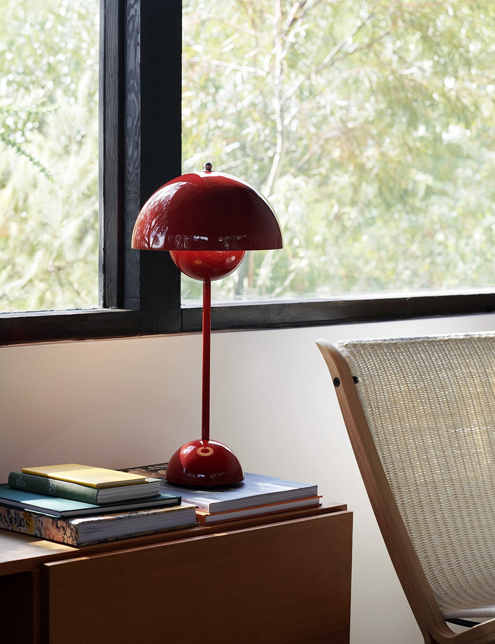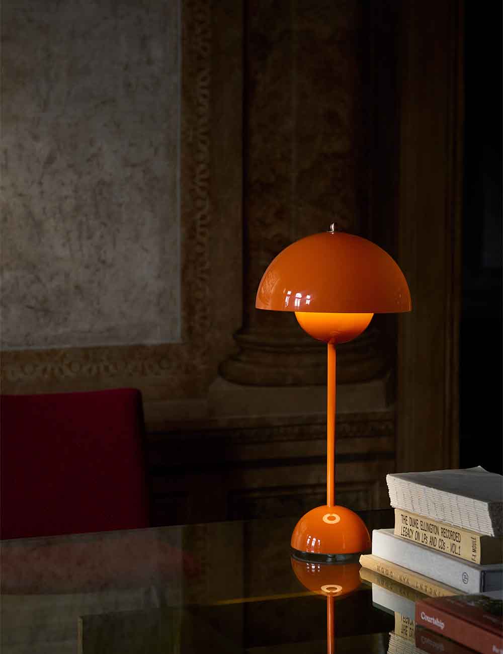 • Lampada da tavolo Flowerpot VP3, progetto originale di Verner Panton (1969).