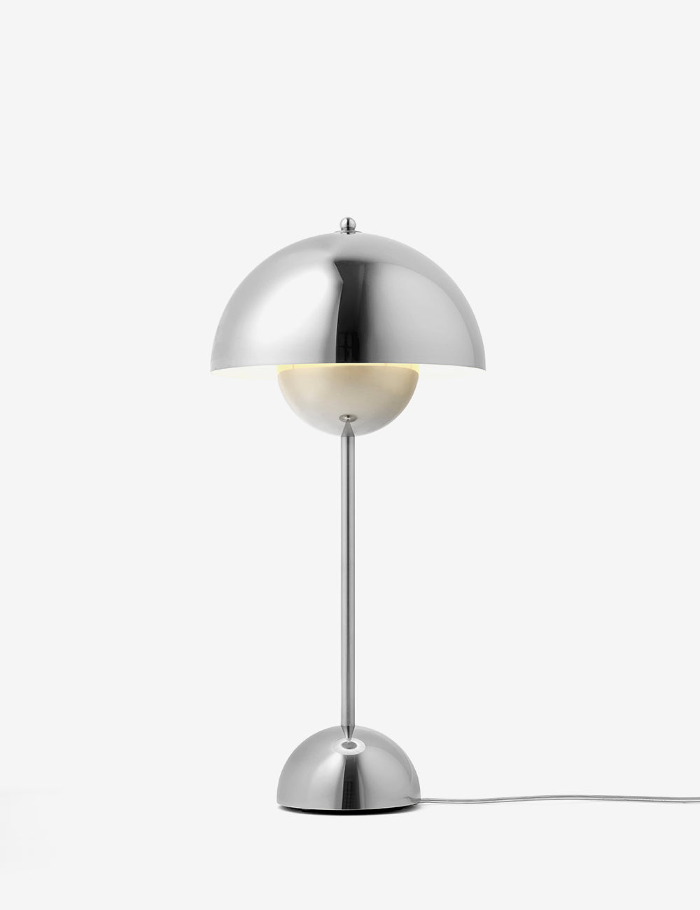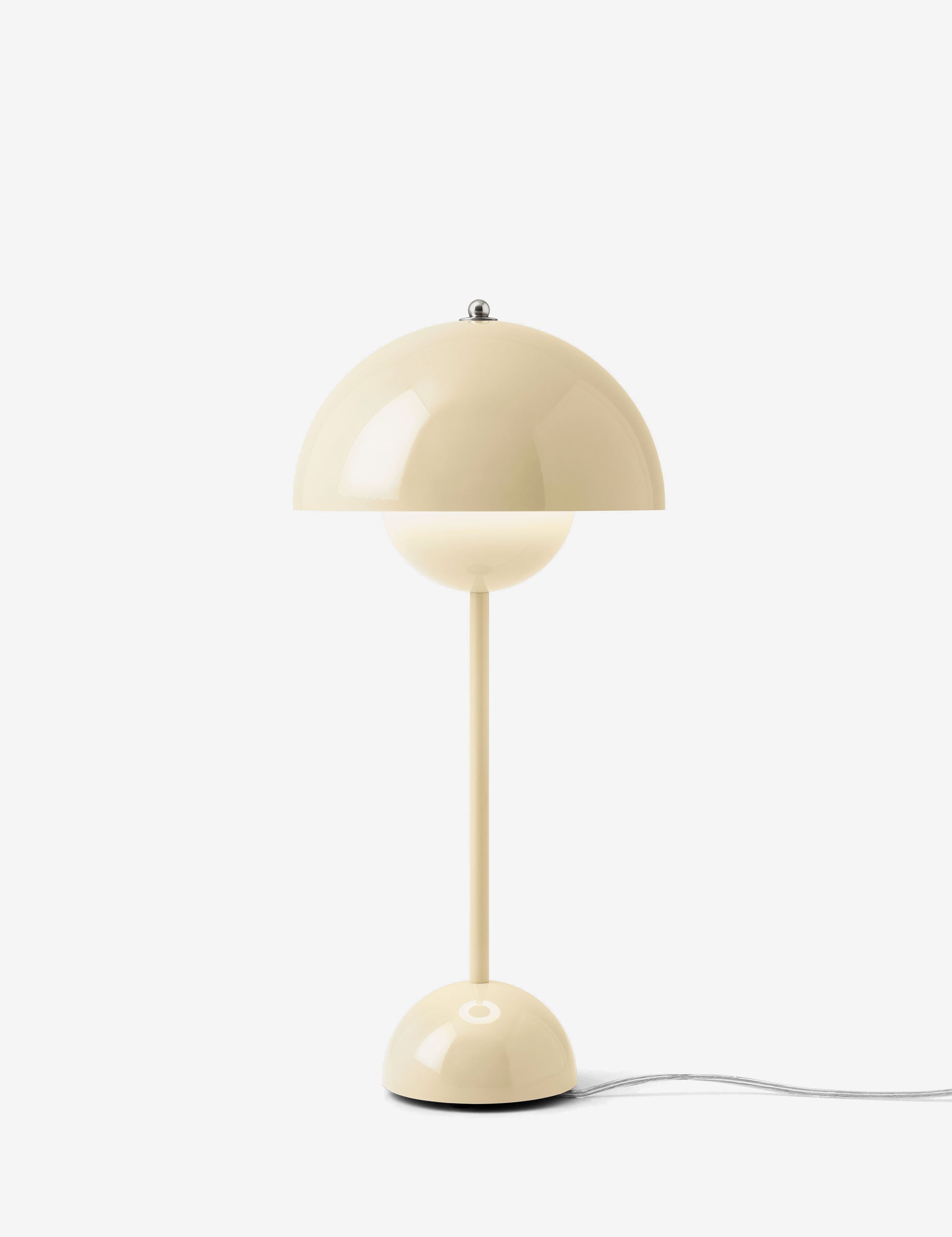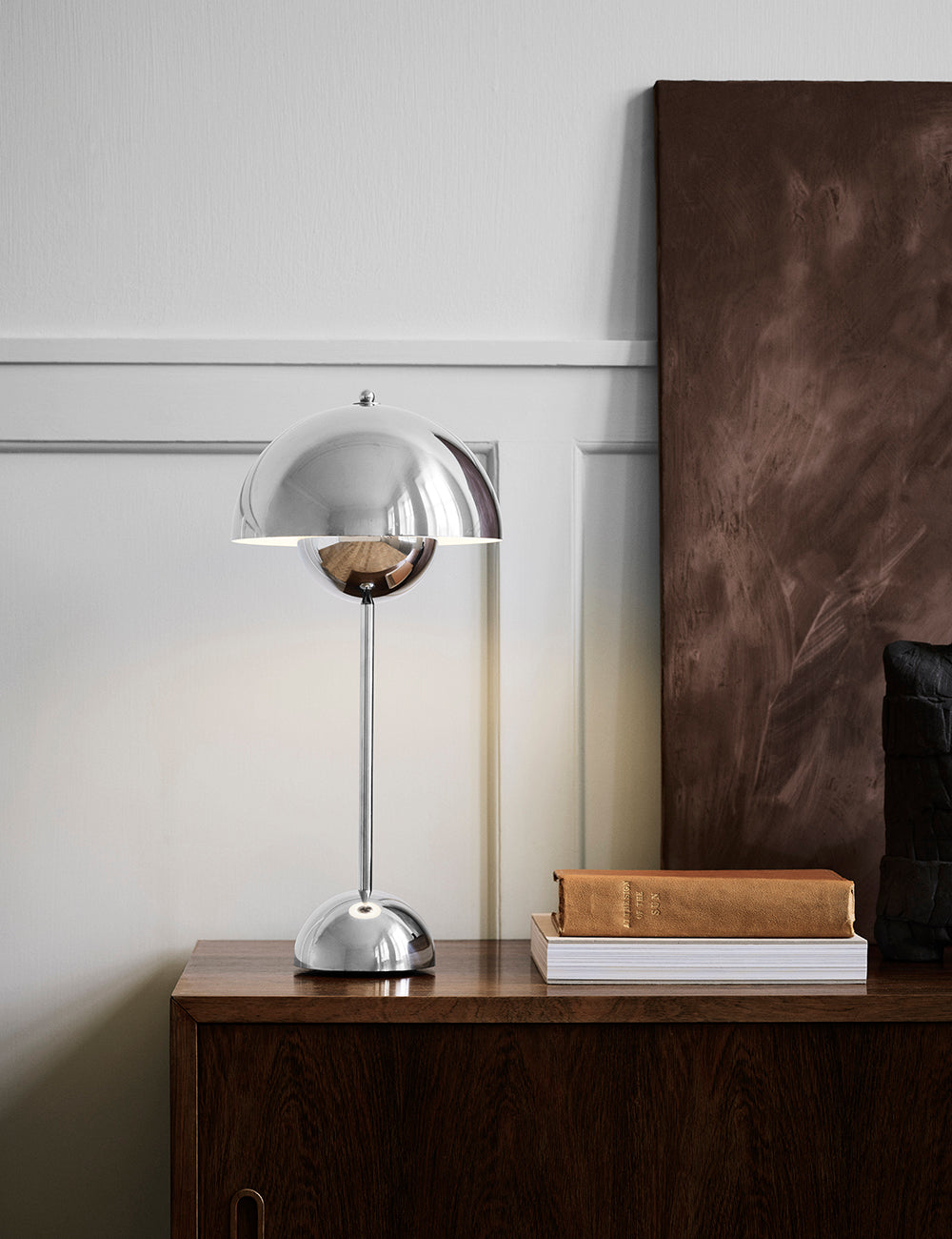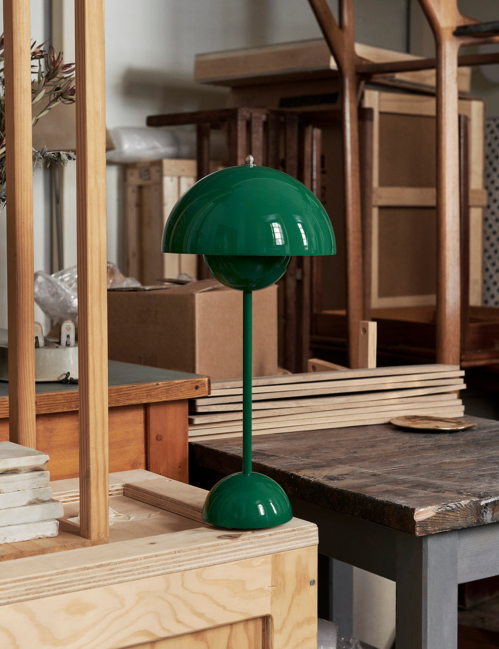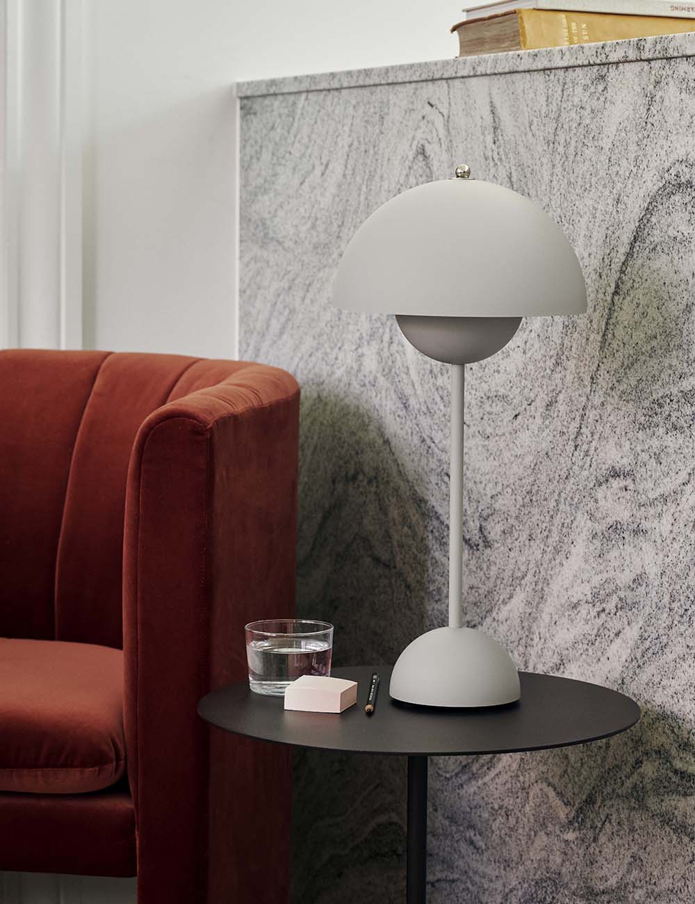 • Lampada da tavolo Flowerpot VP3, progetto originale di Verner Panton (1969).