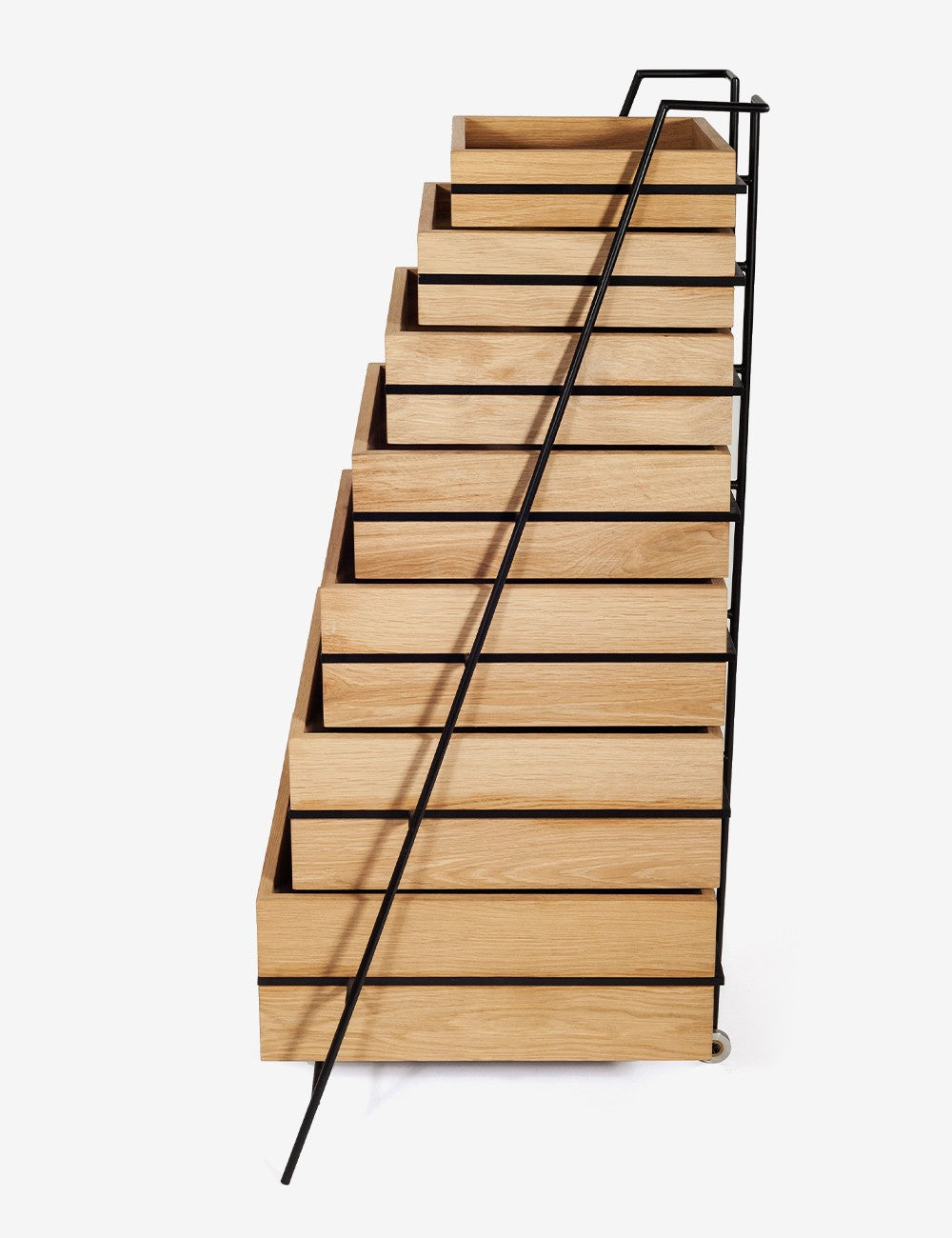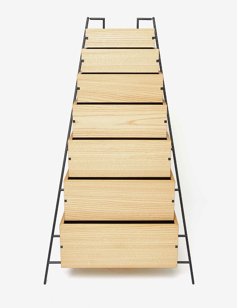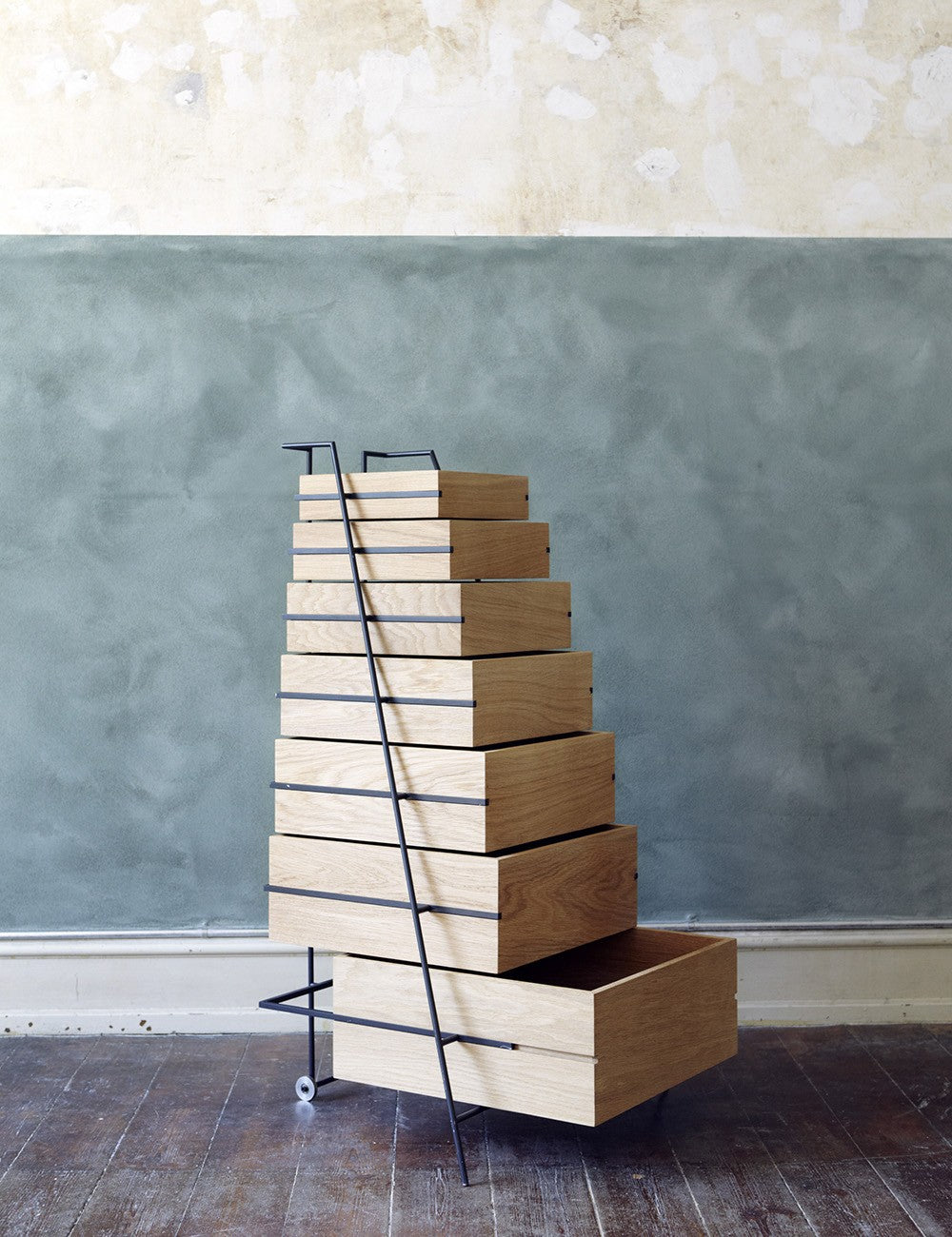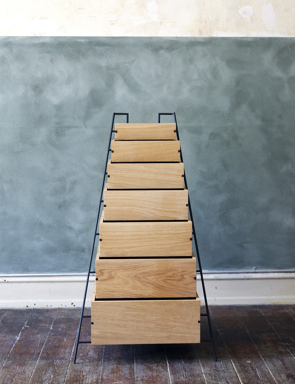 Caratterizzato da una sottile struttura in acciaio e da cassetti in legno massello, che possono essere incastrati l'uno nell'altro, Sutoa è un pezzo sorprendente, adatto a diversi ambienti e stanze.