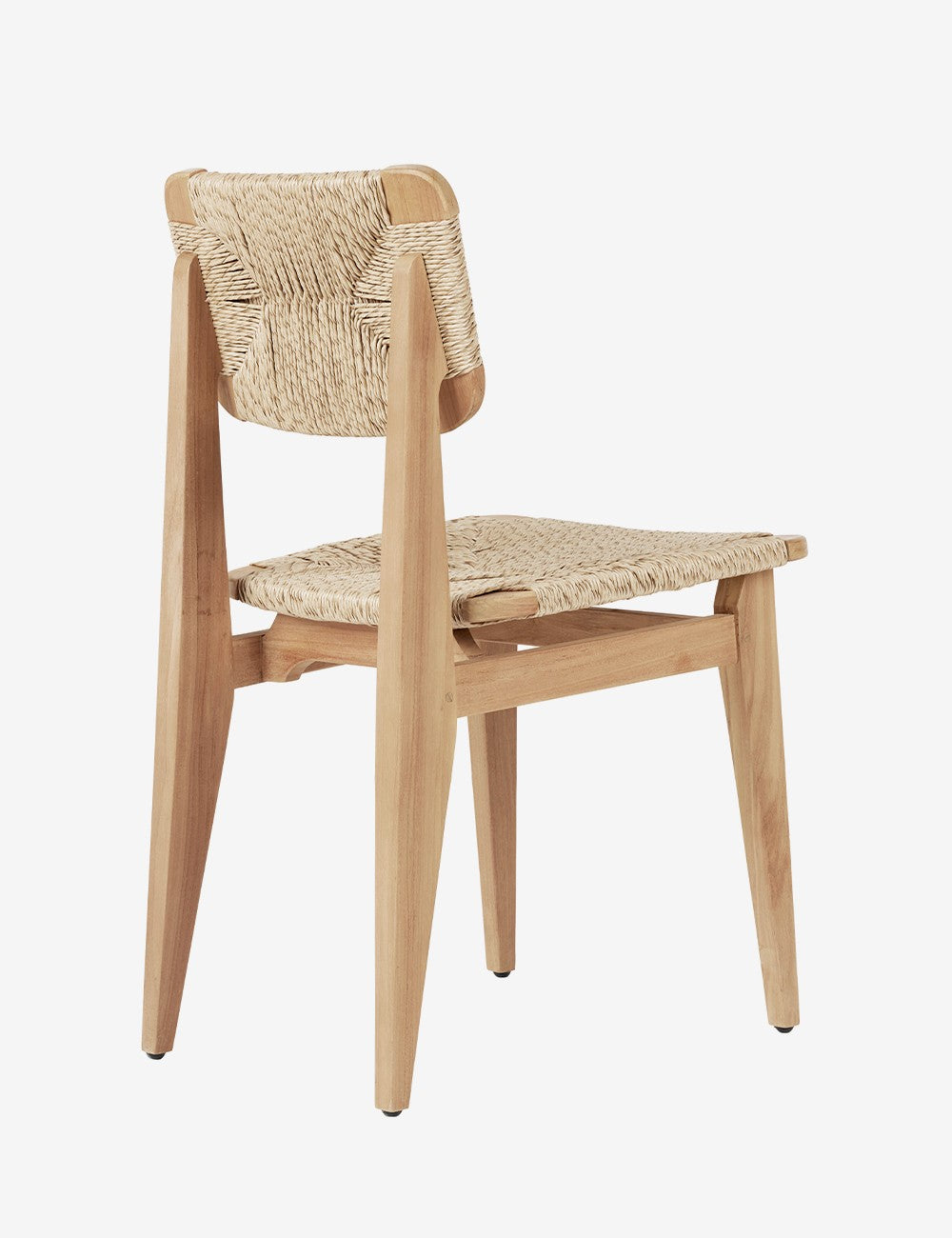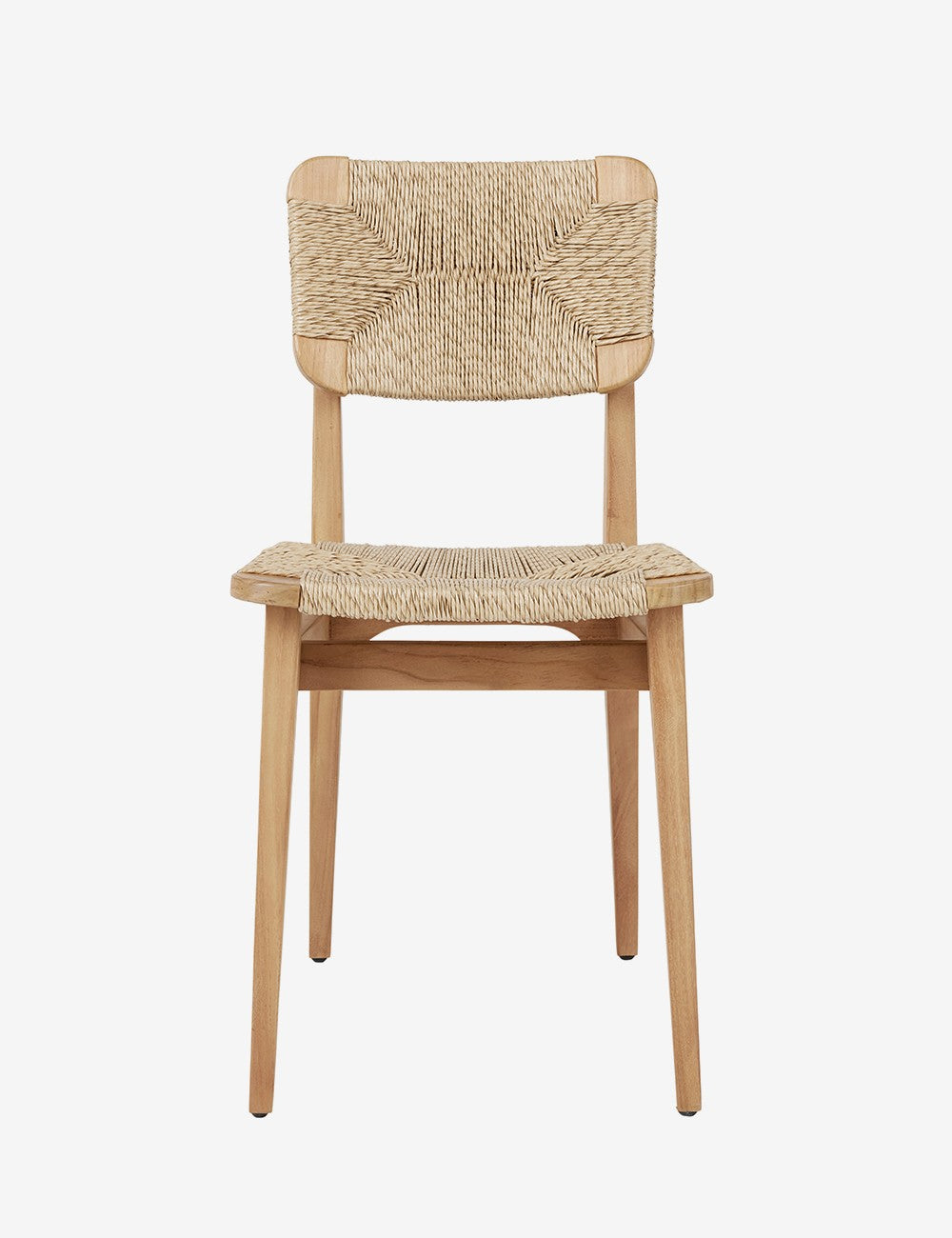 Adatta sia per uso interno che esterno, la C-Chair è realizzata in legno di teak e vimini di polietilene ad alta densità, molto simile nell'aspetto alla corda di carta naturale.
