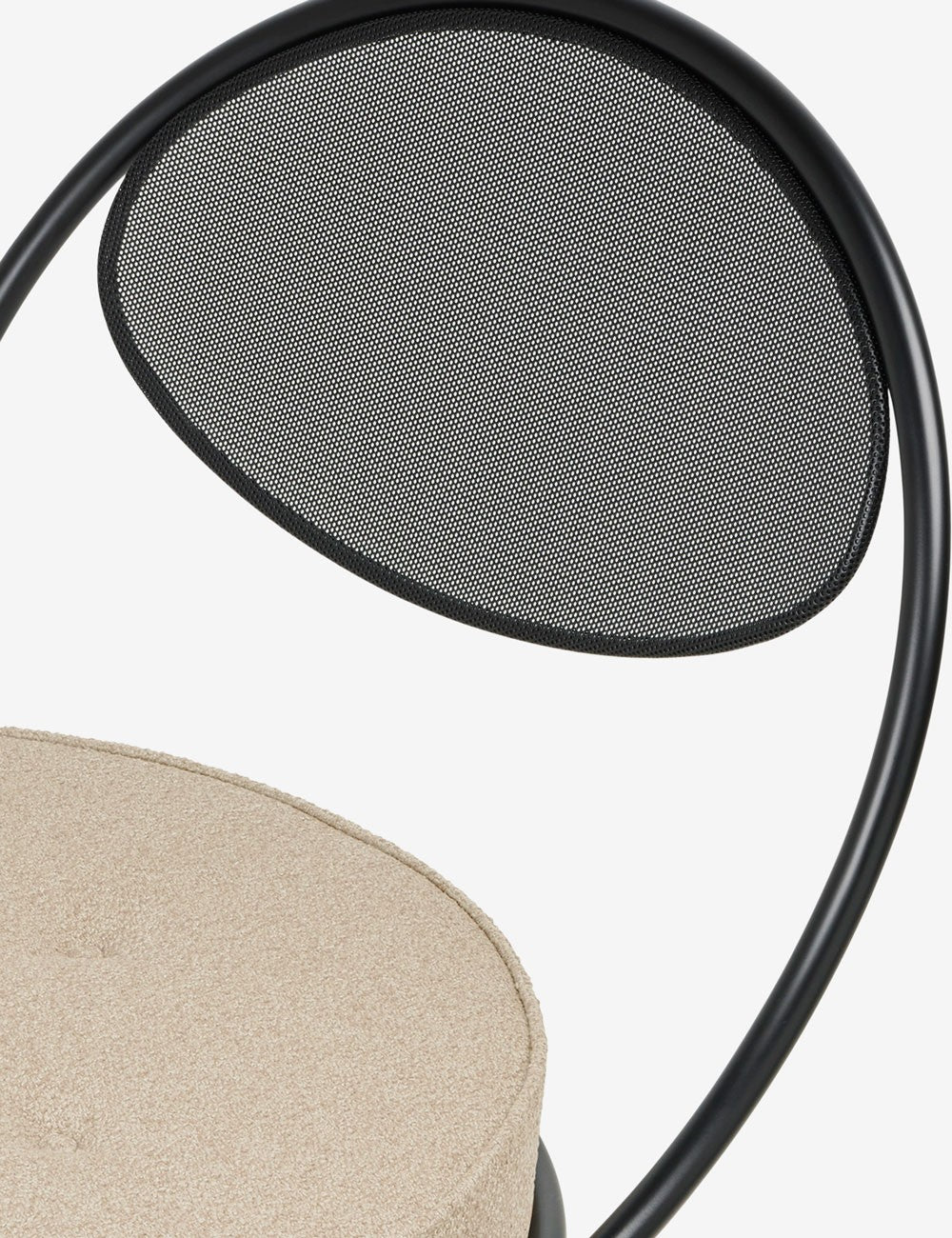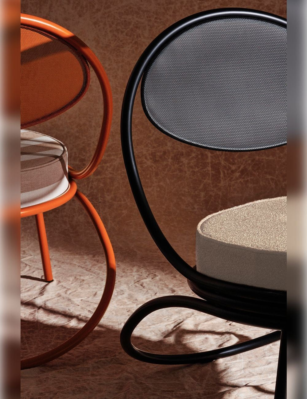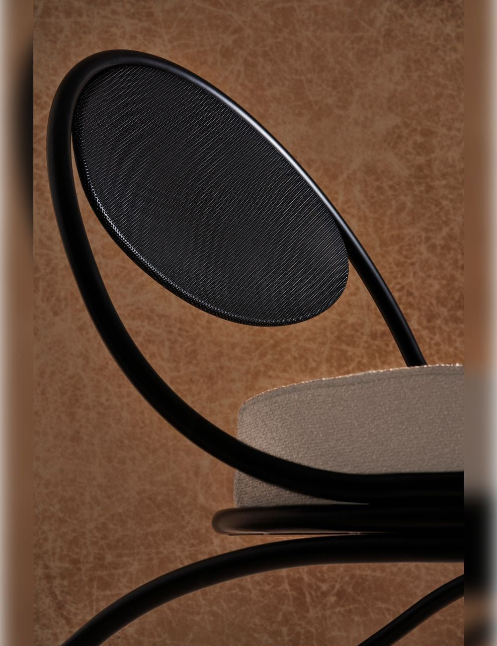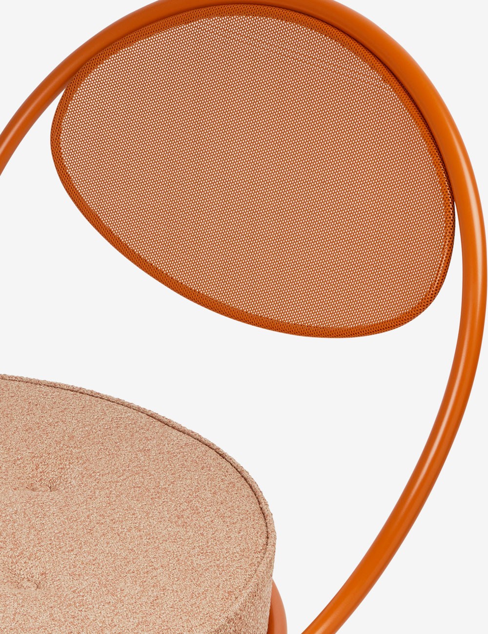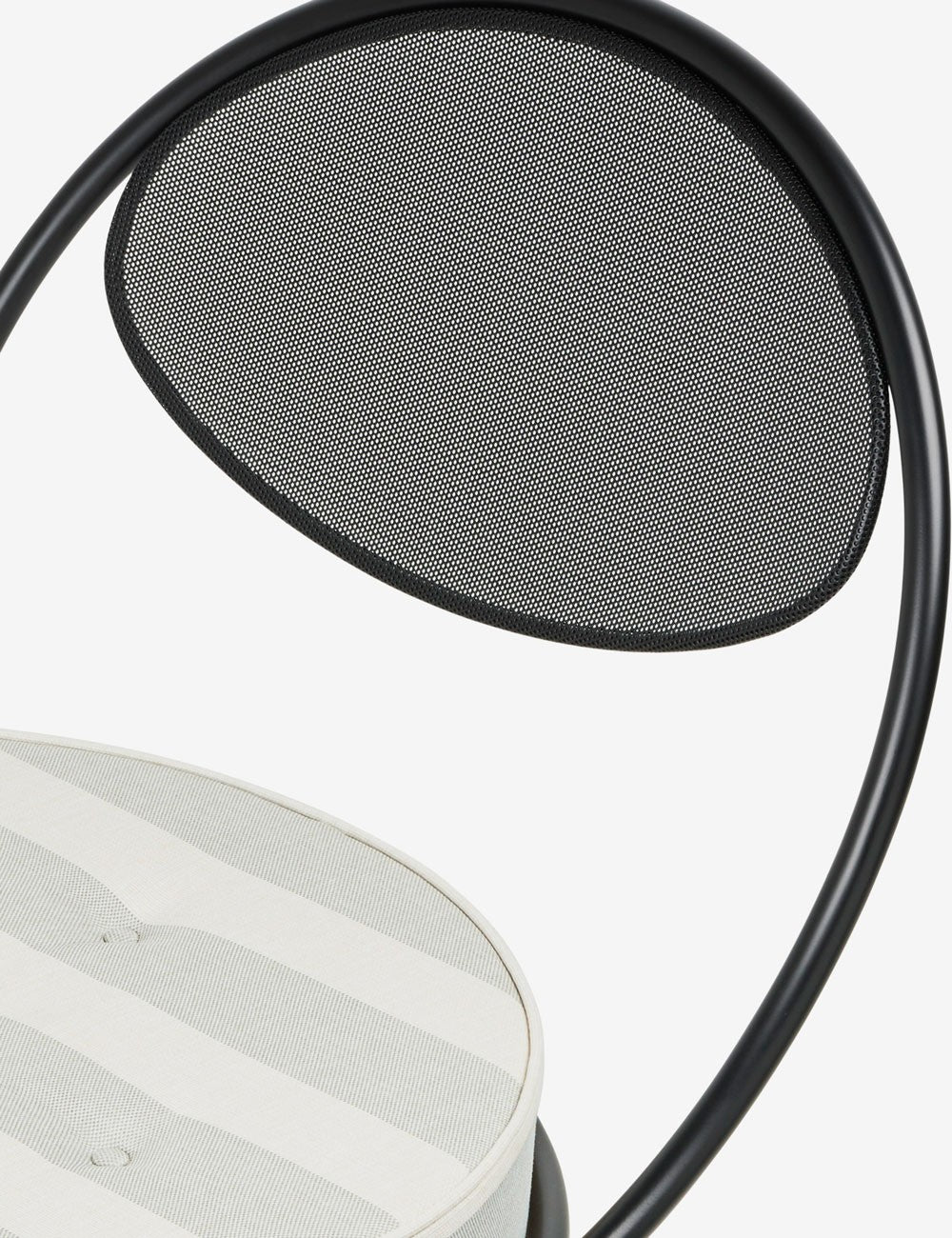 Copacabana sembra disegnata con un singolo tratto di matita, e la sua eleganza risiede nella forza continua delle sue linee. È costruita su una struttura tubolare curva che circonda la seduta rotonda e lo schienale in lamiera forata, spesso caratteristici delle opere di Matégot, e termina con le gambe posteriori continue.