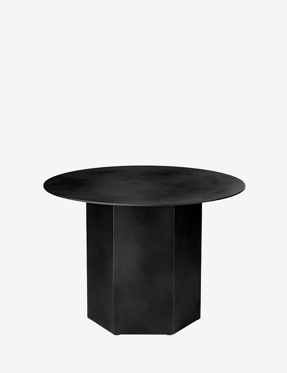 Originariamente realizzato in Italia in pietra travertino, la nuova variante del tavolo segna la prima volta che GamFratesi lavora con lastre di acciaio, che vengono zincate, laccate e poi sottoposte a una serie di processi di finitura manuale per creare una superficie unica per ogni tavolo.