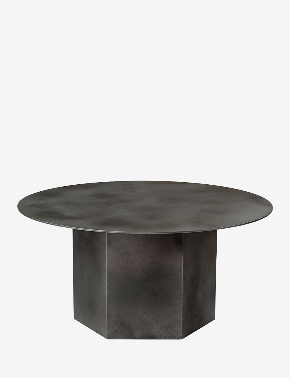 Originariamente realizzato in Italia in pietra travertino, la nuova variante del tavolo segna la prima volta che GamFratesi lavora con lastre di acciaio, che vengono zincate, laccate e poi sottoposte a una serie di processi di finitura manuale per creare una superficie unica per ogni tavolo.