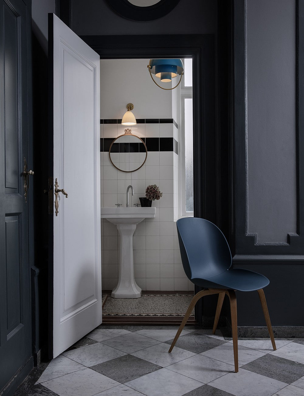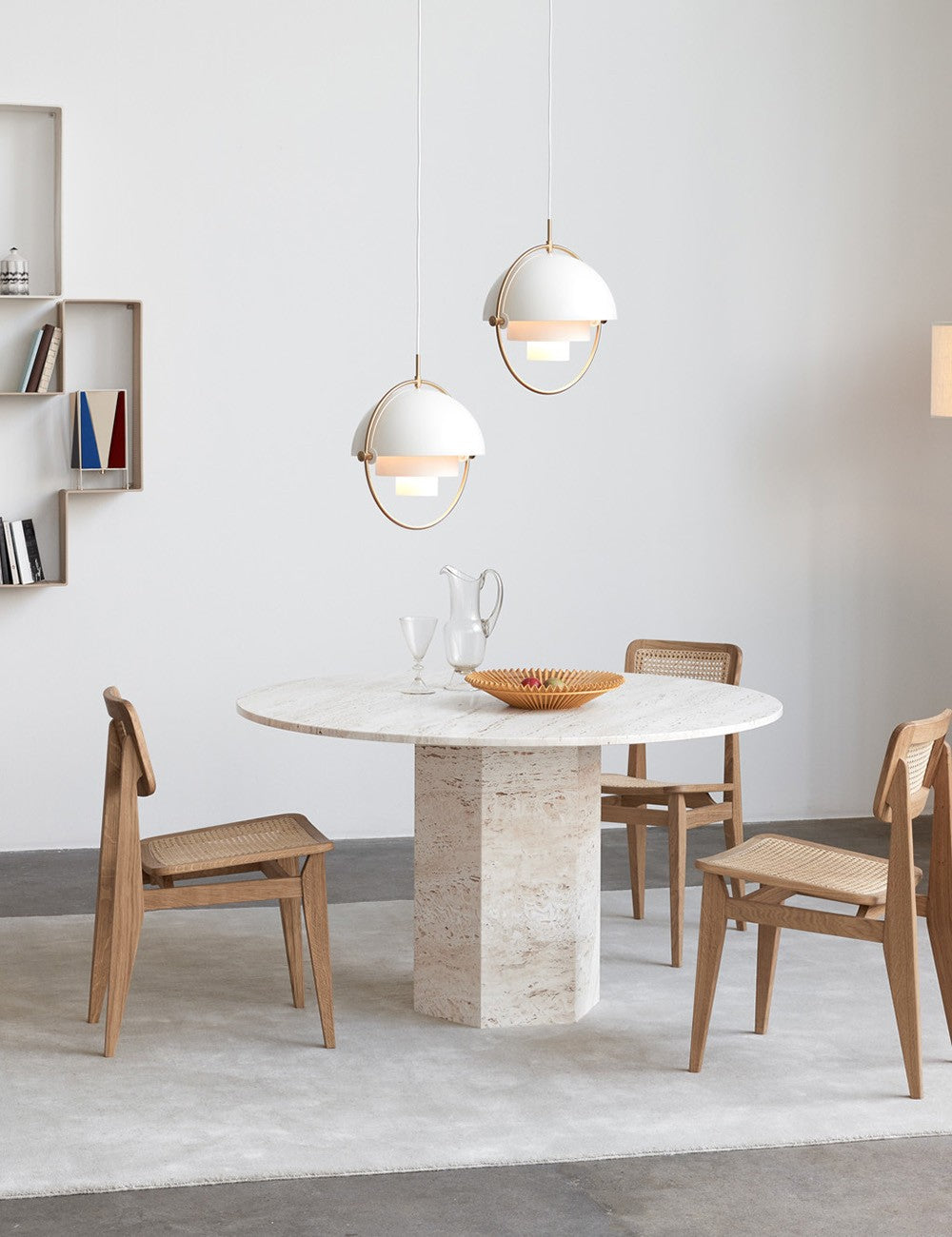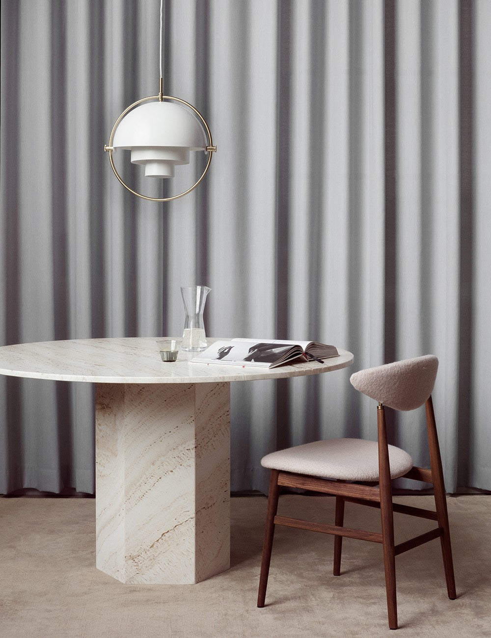 Questa elegante lampada gioca con le forme geometriche. Come suggerisce il nome, ha molteplici utilizzi e configurazioni. Ruotando i due paralumi attorno al centro cilindrico, la luce può essere proiettata verso l'alto, verso il basso e lateralmente.