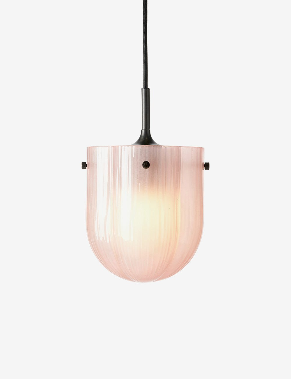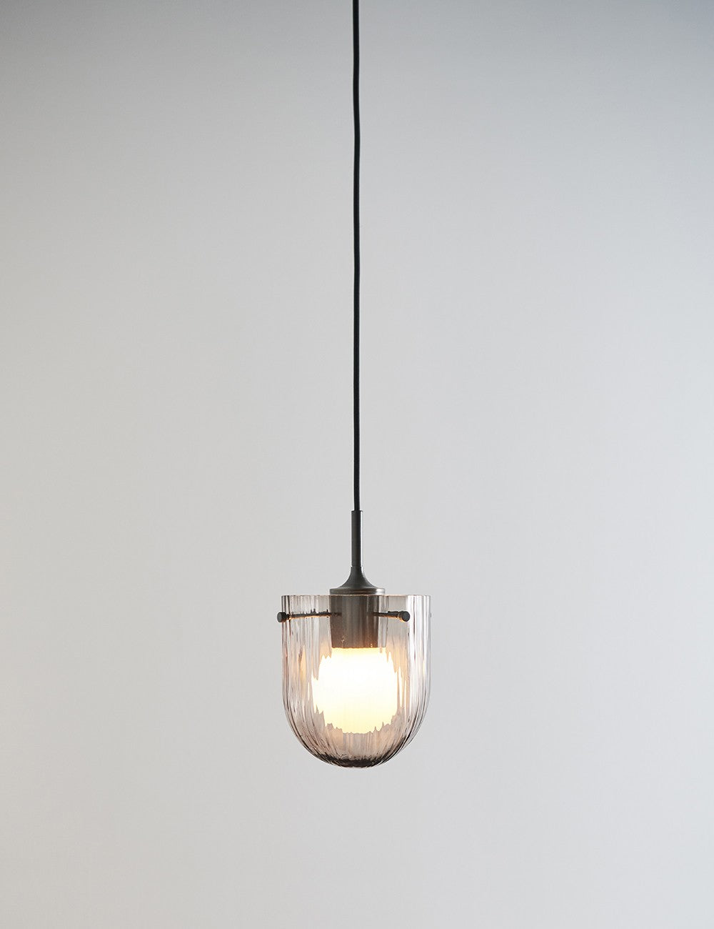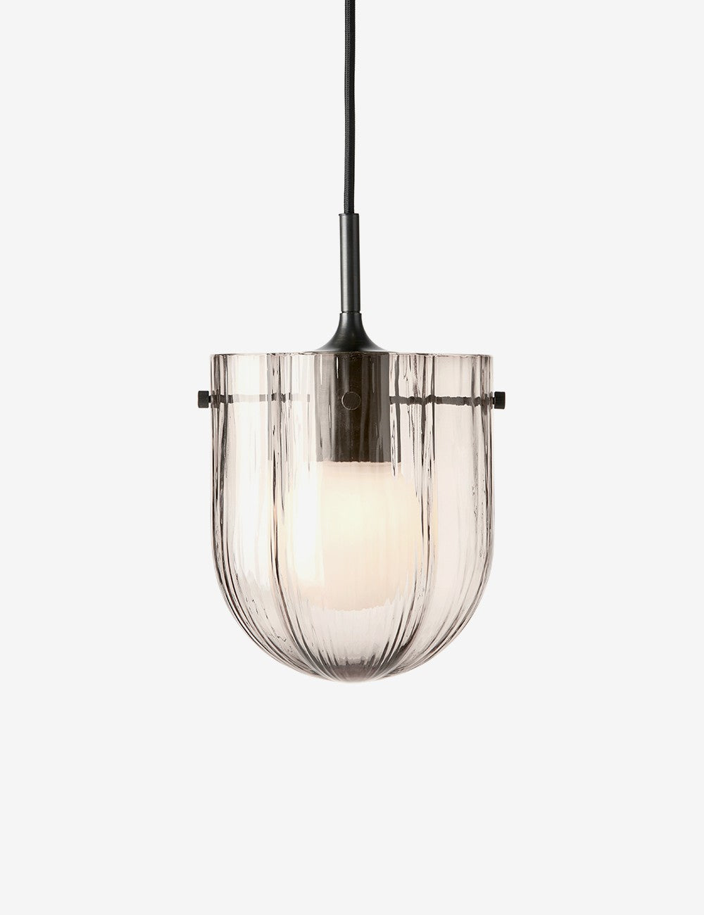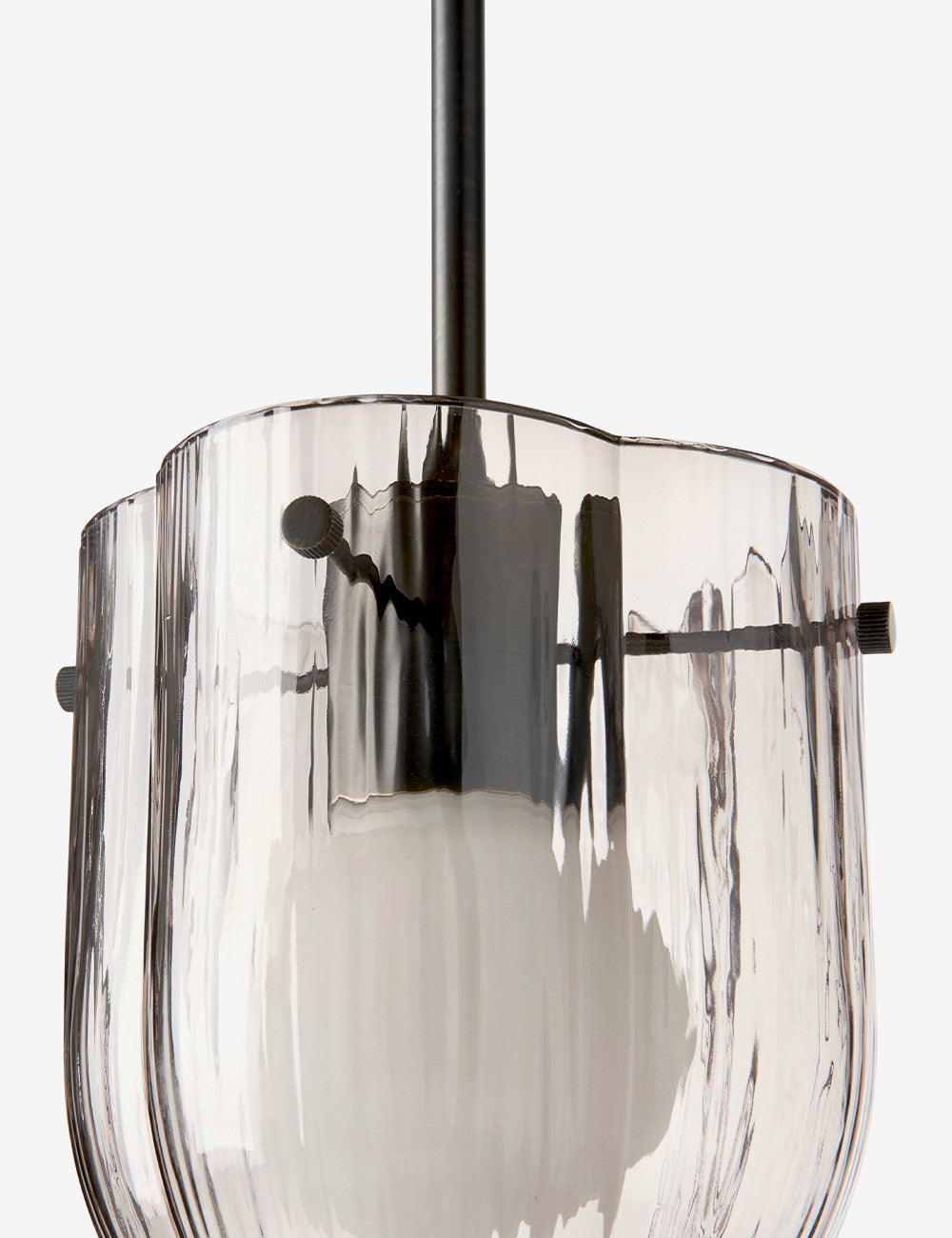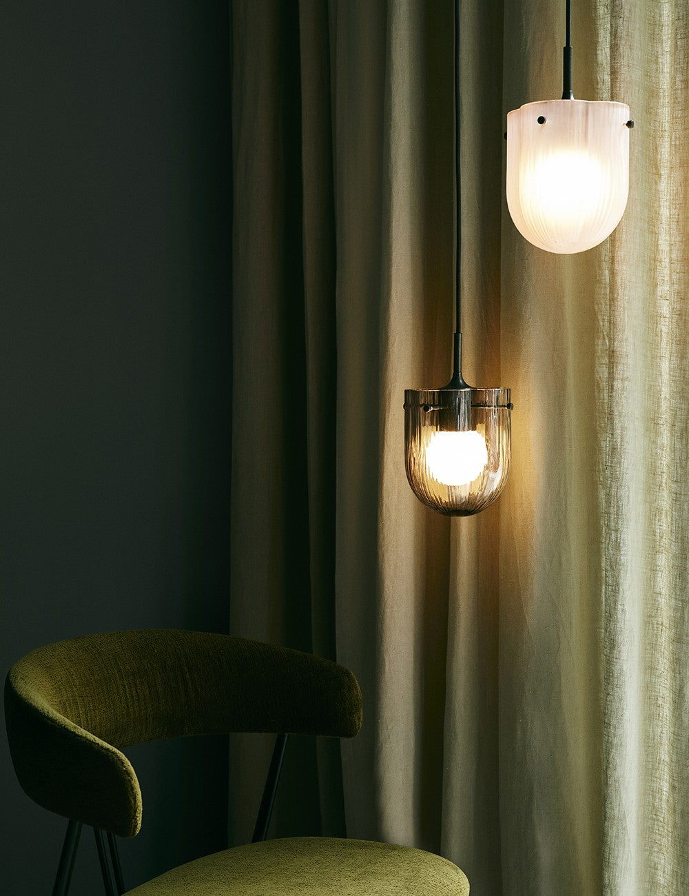 La collezione Seine, disegnata da Space Copenhagen per GUBI, si ispira al comportamento della luce riflessa nell'acqua in movimento, un effetto catturato attraverso l'uso del vetro soffiato decorato.
