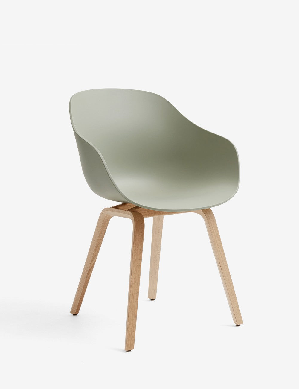 La seduta aerodinamica della sedia è realizzata in polipropilene riciclato post-consumo, mentre la struttura in legno è realizzata in rovere o noce e rifinita con una lacca a base d'acqua ecologica.
