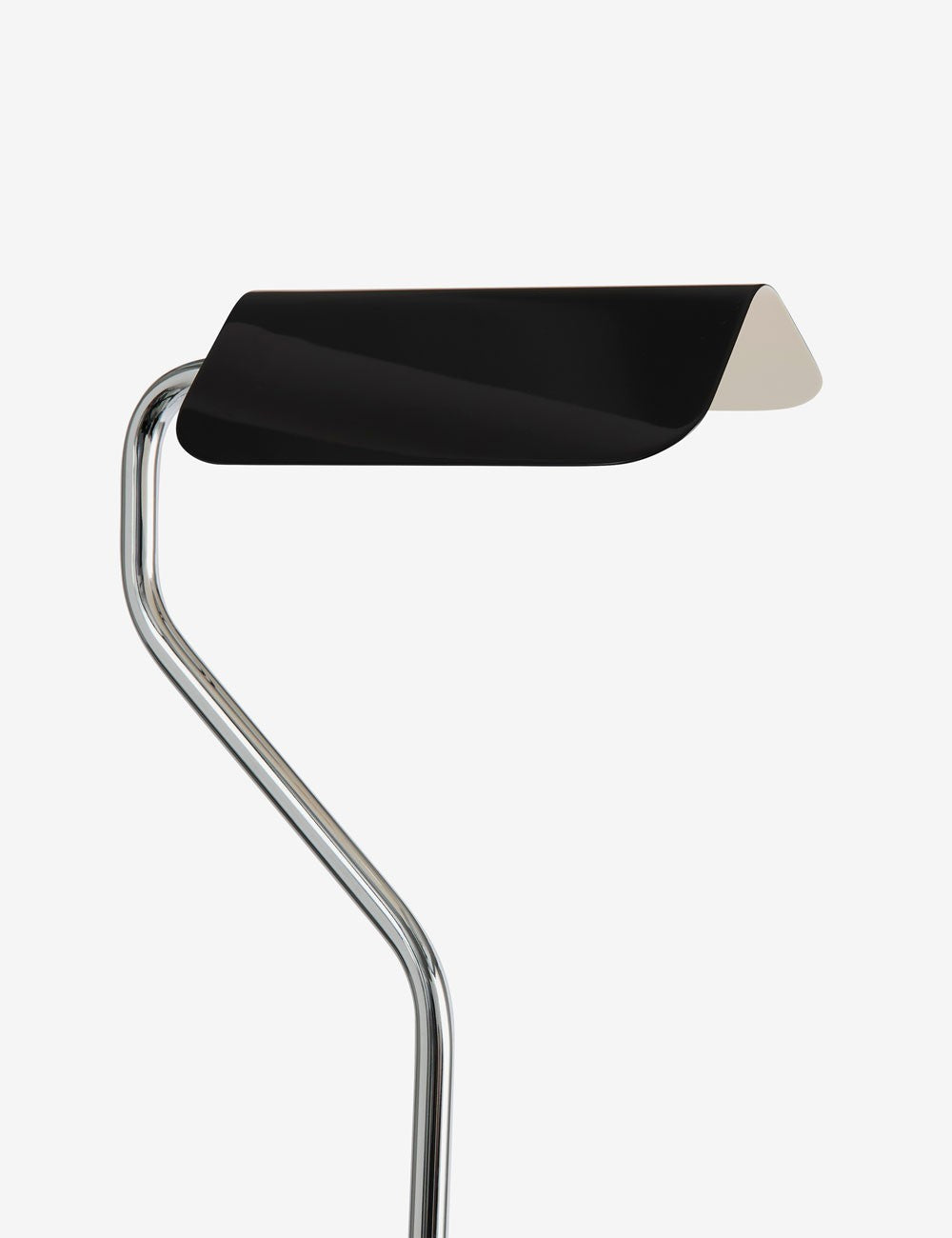Il design Apex è caratterizzato da un paralume in acciaio piegato con una silhouette appuntita, che ispira il nome della lampada e crea un contrasto grafico con le basi cromate.