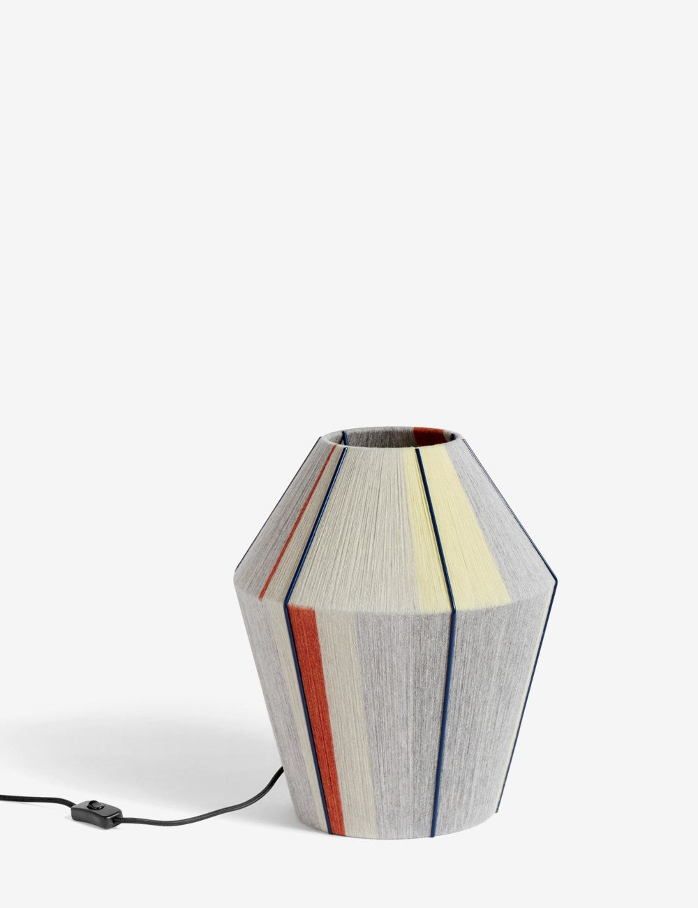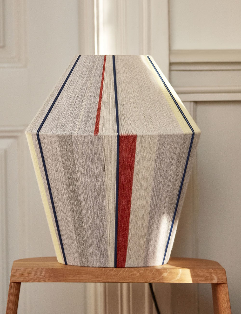 Ogni paralume è realizzato a mano mescolando fili di lana e nylon con una tecnica speciale, che conferisce una superficie strutturata.
