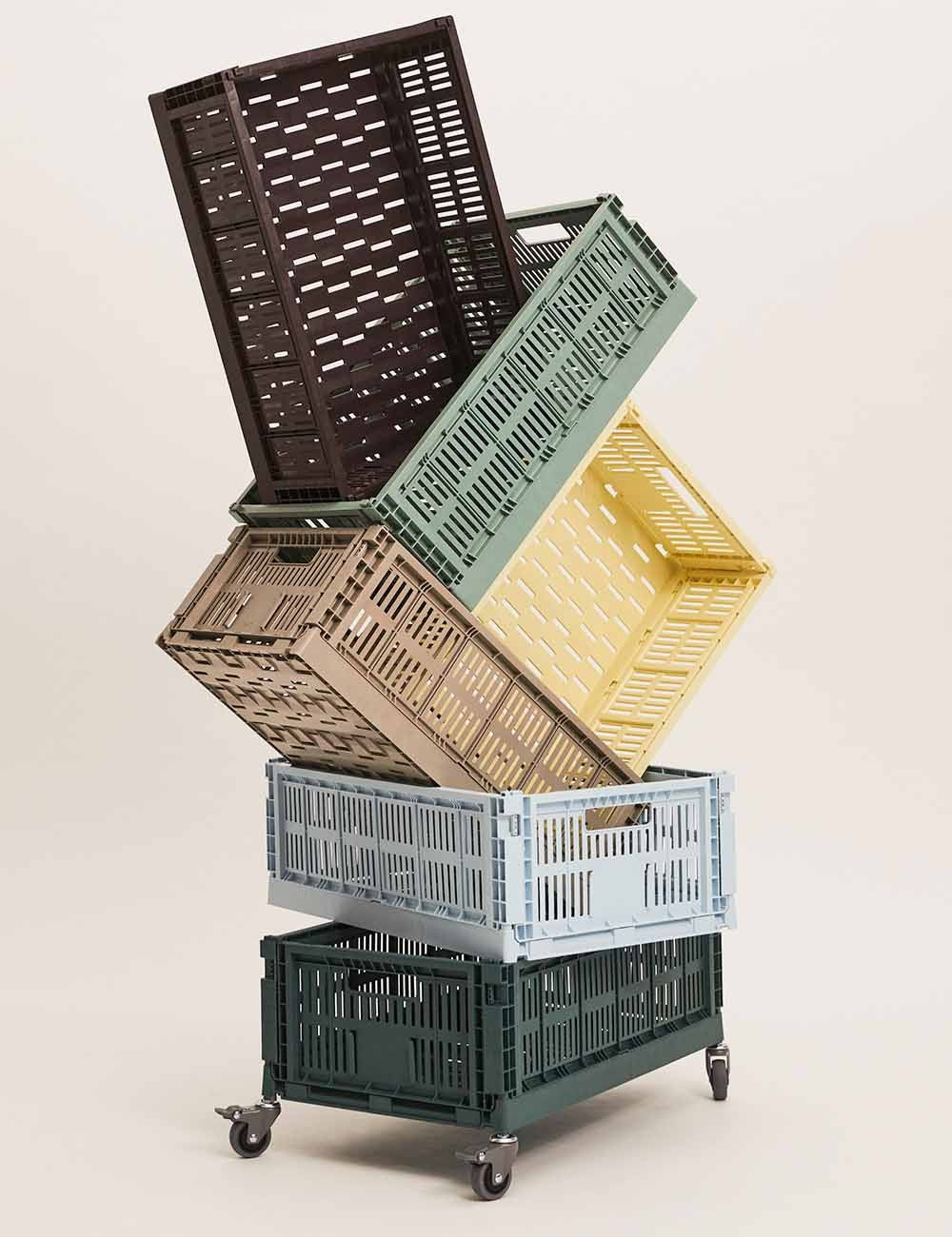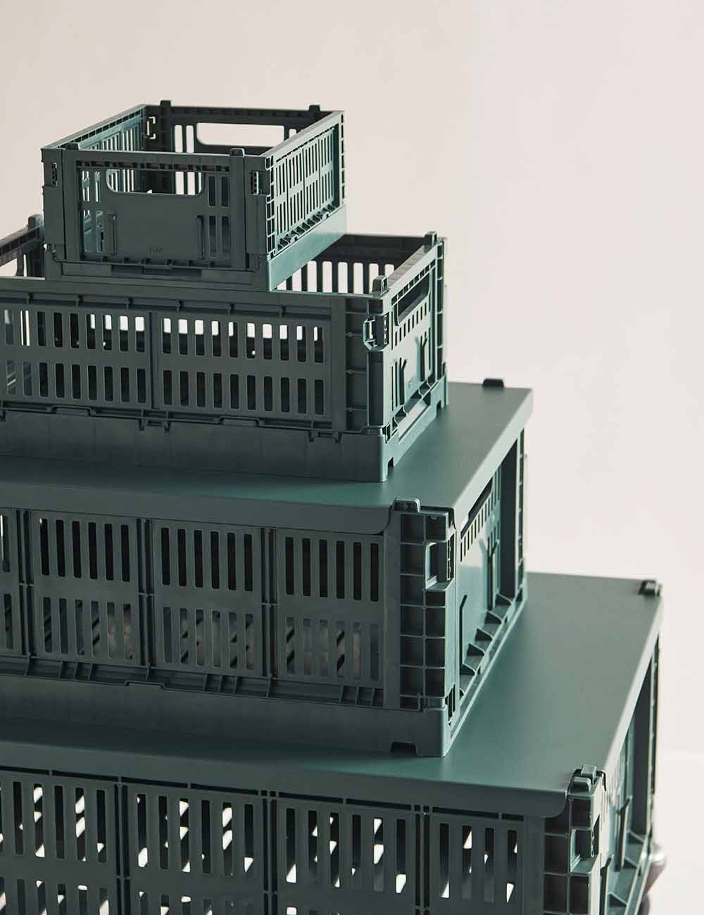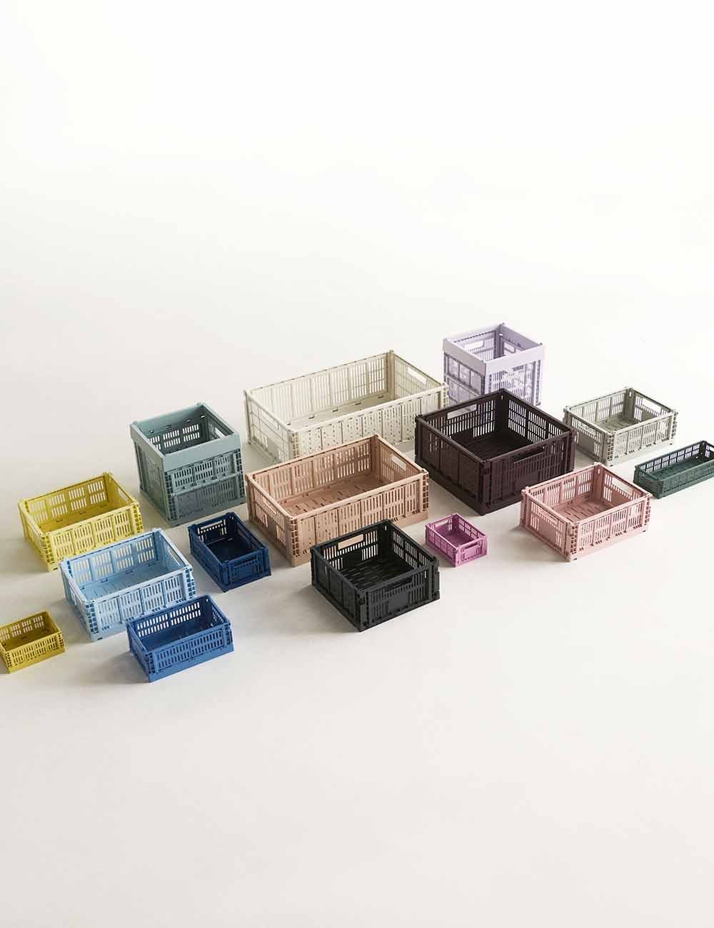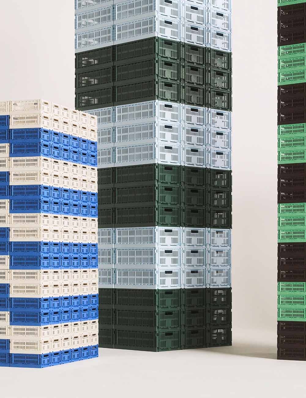 HAY Colour Crate è una serie di contenitori colorati con un design perforato, pieghevoli e impilabili.
