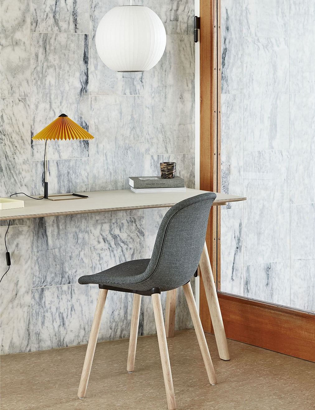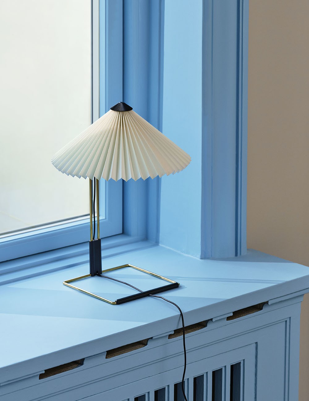 Matin è una lampada da tavolo disegnata da Inga Sempé per HAY, realizzata in ottone con paralume in cotone. Il design delicato di Matin combina una base semplice e contemporanea con un paralume plissettato dalle influenze orientali, dando vita a una lampada dal design sofisticato e dalla forte personalità.