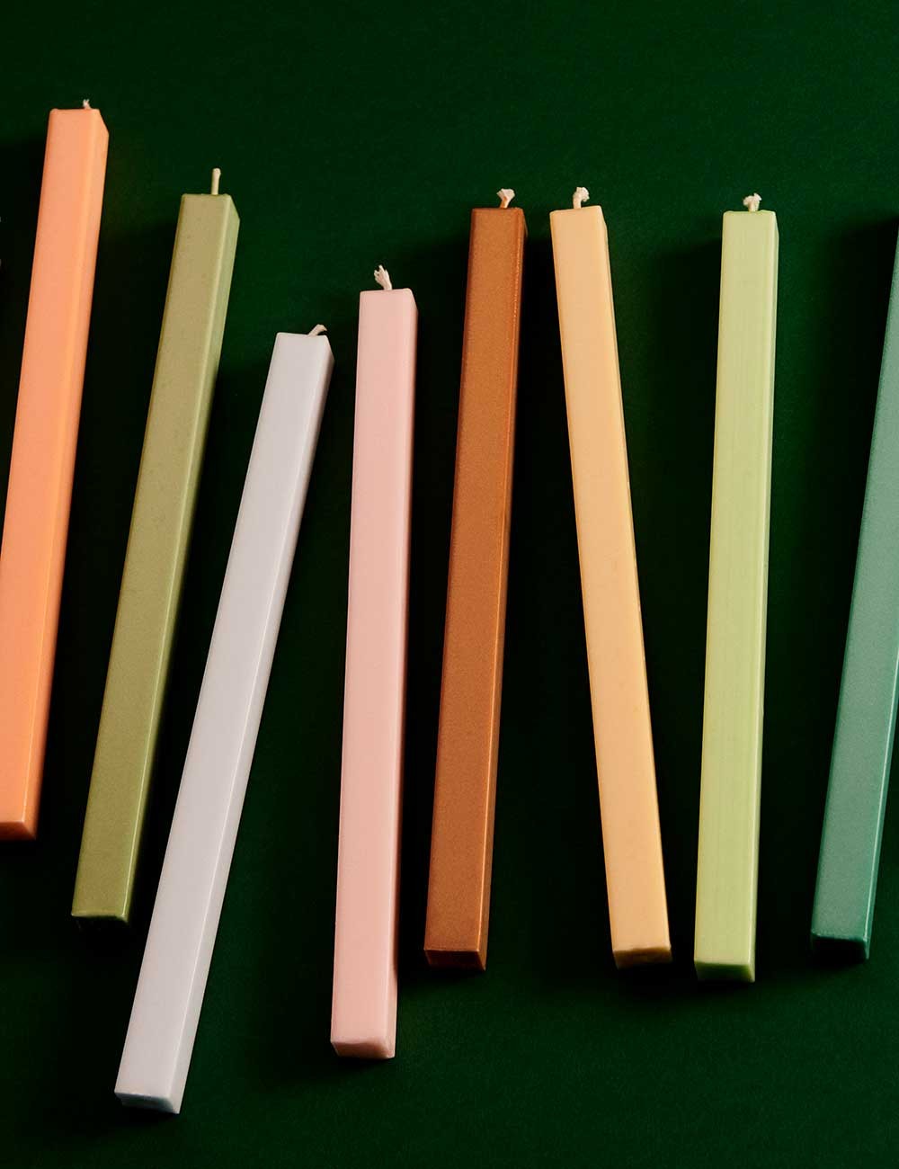 Con un'elegante forma quadrata e una finitura opaca, queste candele colorate sono progettate per essere accattivanti sia singolarmente che in set.