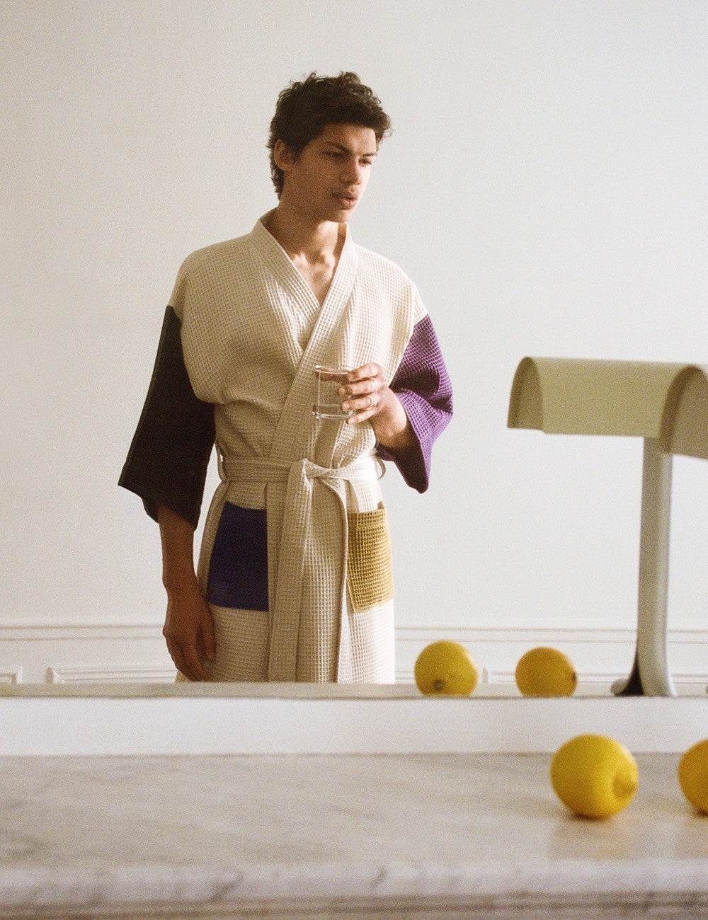 L'accappatoio HAY Waffle coniuga un design multicolore contemporaneo con un comfort eccezionale.