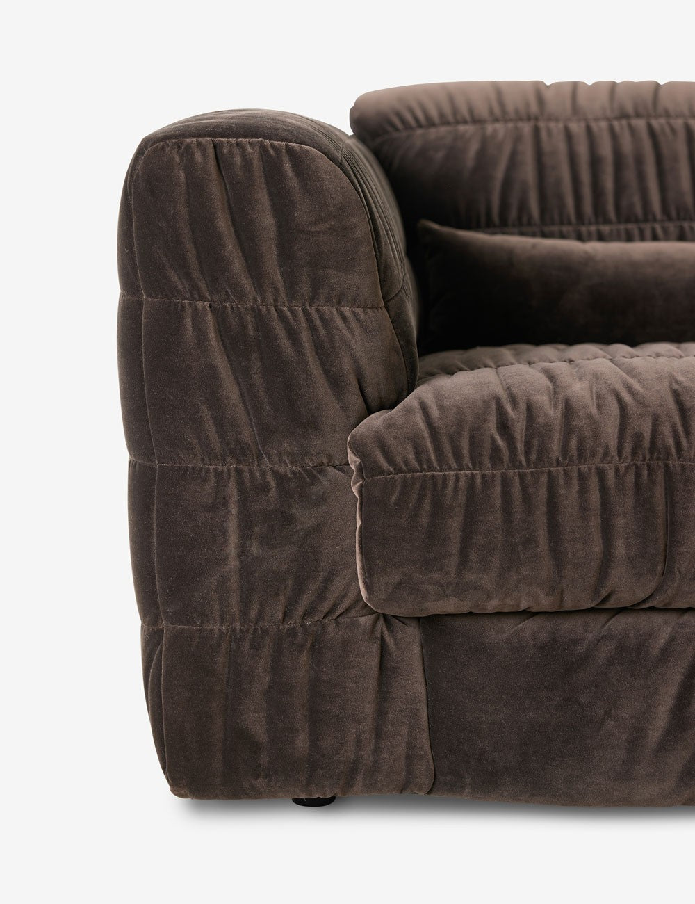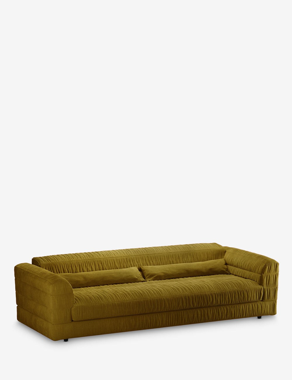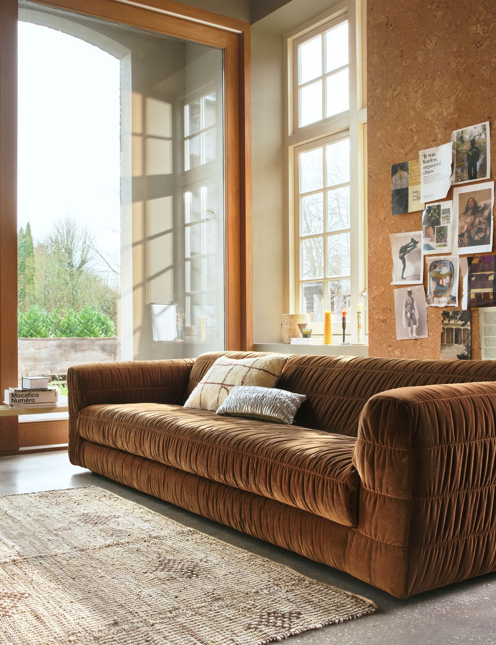 Lasciatevi conquistare dall'eleganza e dal comfort di questo divano, che si distingue per le sue linee raffinate e il rivestimento in velluto arricciato. Il suo design curvilineo è stato progettato per offrire una seduta avvolgente ed estremamente confortevole, mentre l'ampia seduta offre spazio a sufficienza per voi e i vostri ospiti, creando un ambiente ideale per rilassarsi o socializzare con stile.