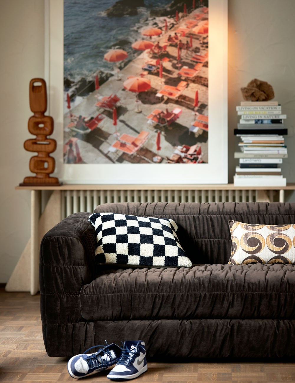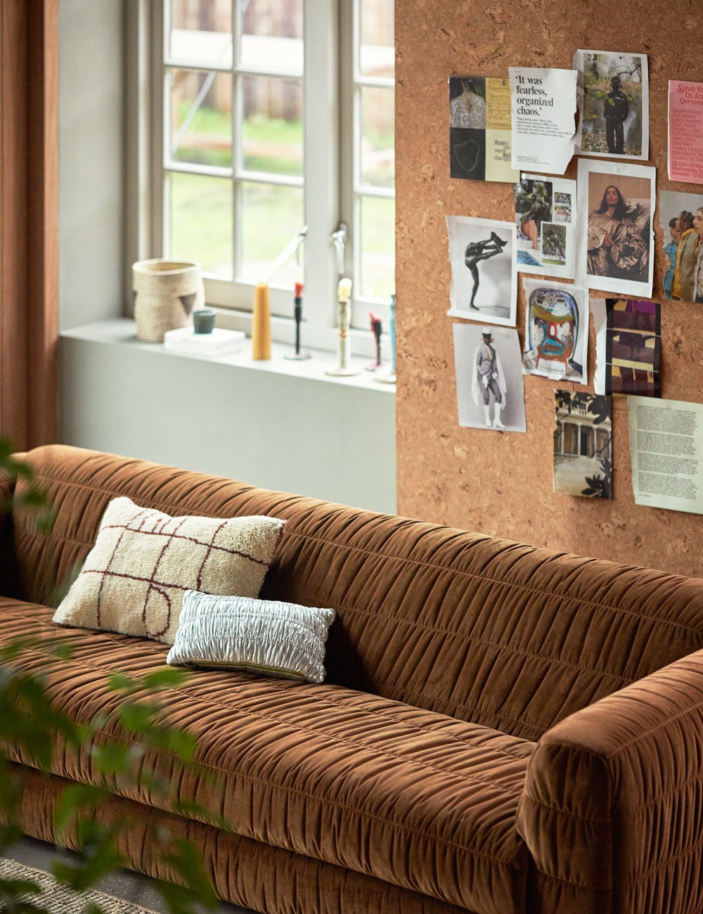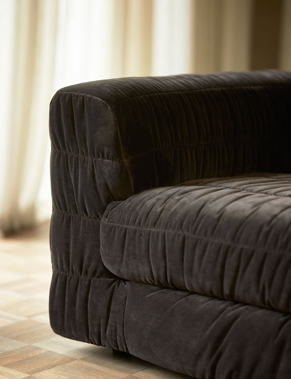 - Rivestito in lussuoso, morbido e sofisticato velluto arricciato.