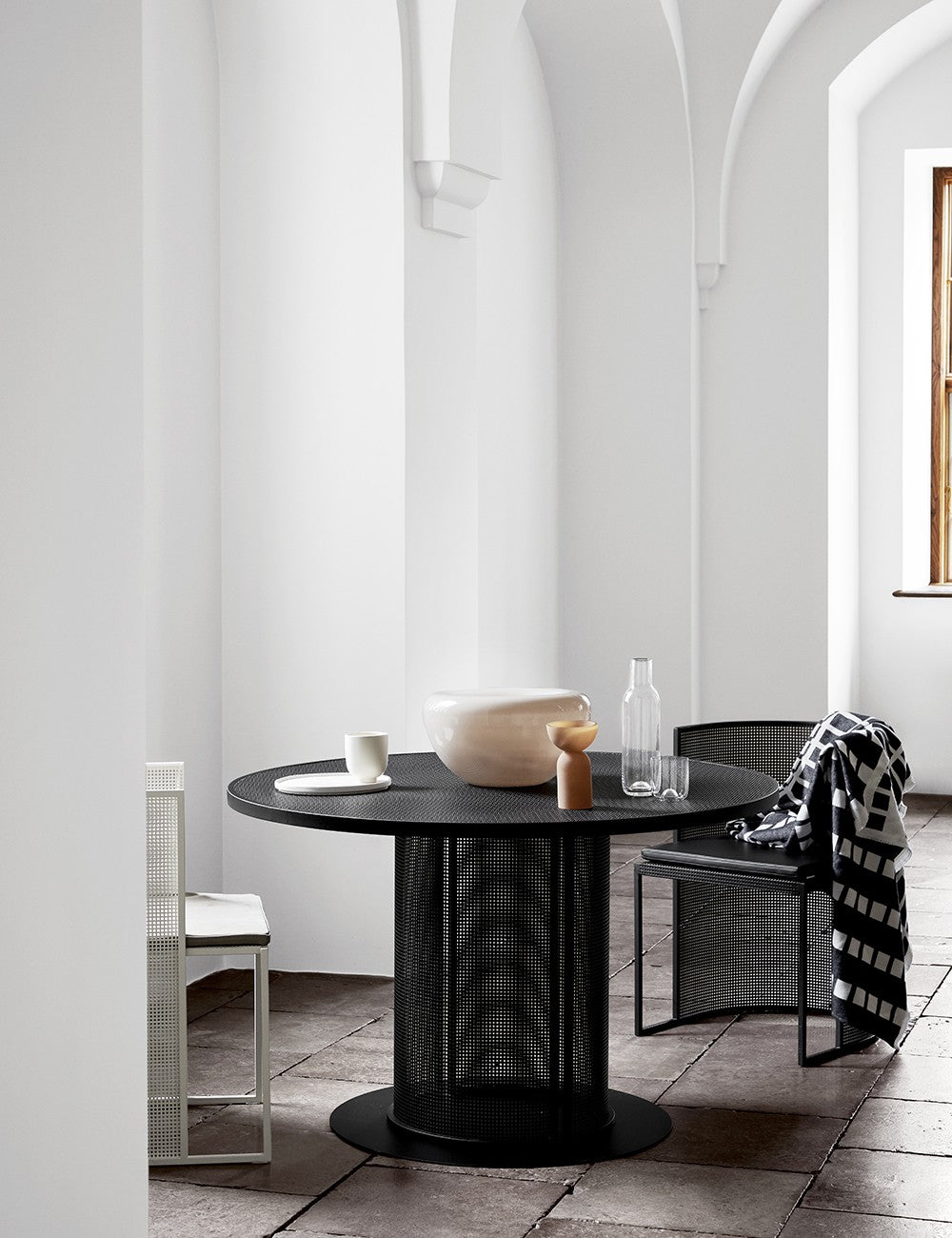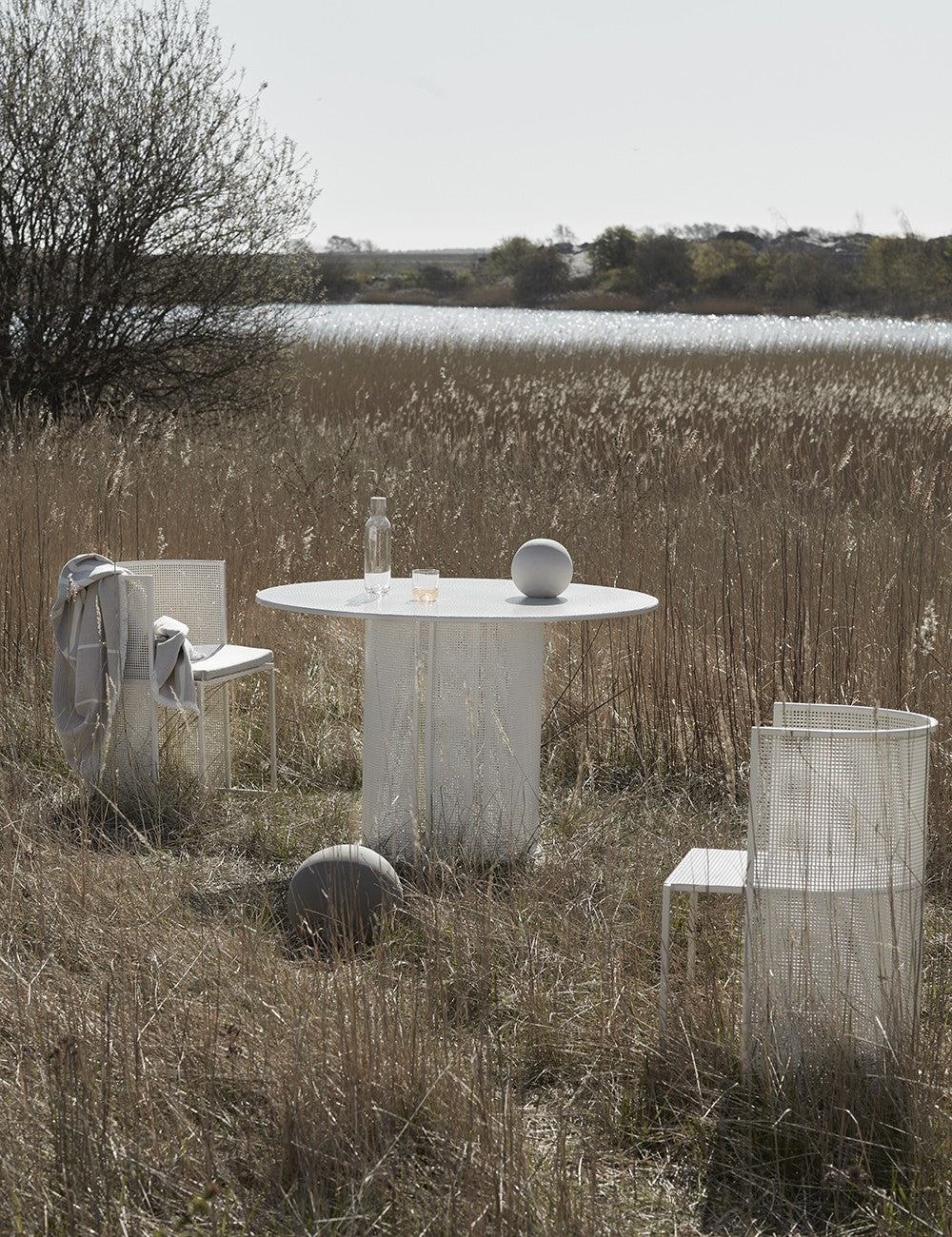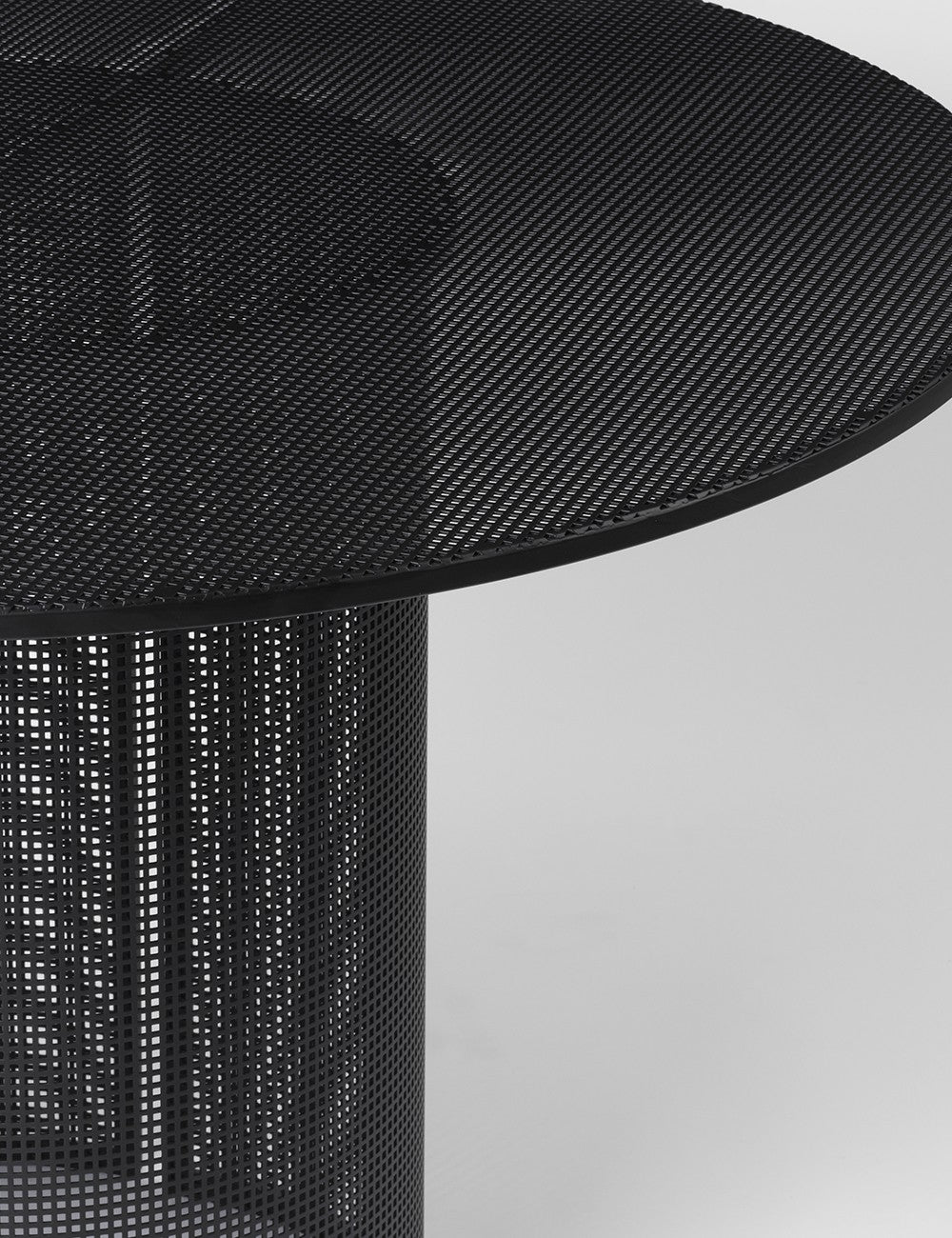Il tavolo da pranzo Bauhaus è realizzato con la griglia in acciaio perforato, firma del designer. Grazie al trattamento di verniciatura a polvere, la sua struttura è estremamente resistente, rendendolo adatto all'uso esterno.