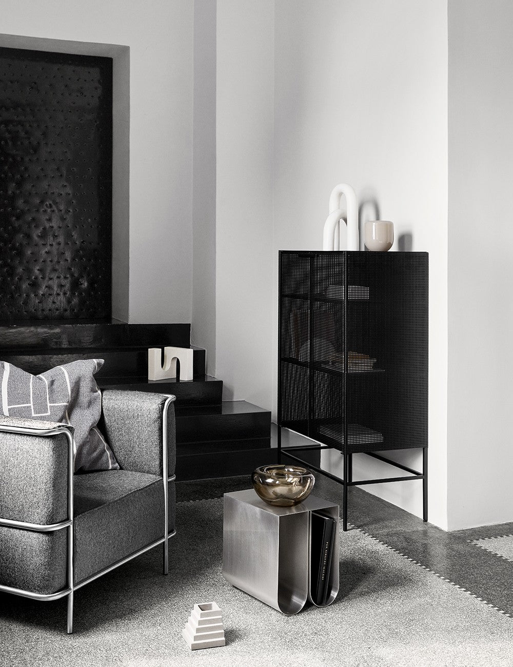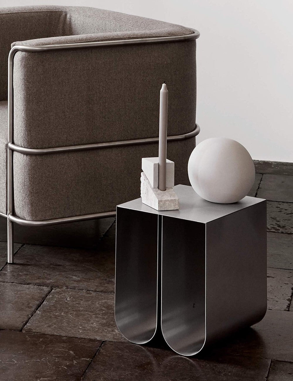 La serie Curved di Kristina Dam è una serie di tavoli e panche in stile minimalista realizzati in acciaio.
