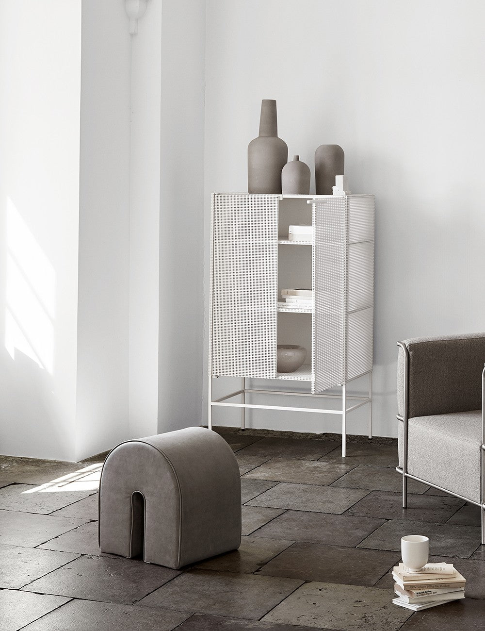 La linea Grid di Kristina Dam è una serie di mobili contenitori realizzati in acciaio perforato con uno stile a griglia minimalista.