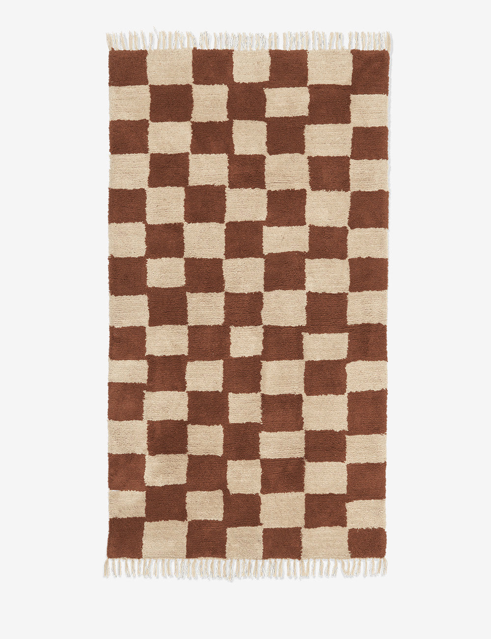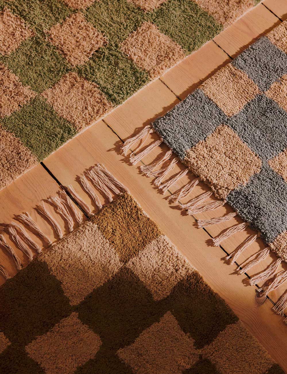 Il tappeto lavabile Mara reinventa il classico tappeto con un approccio contemporaneo, caratterizzato da un sorprendente motivo a quadri e frange decorative alle estremità.