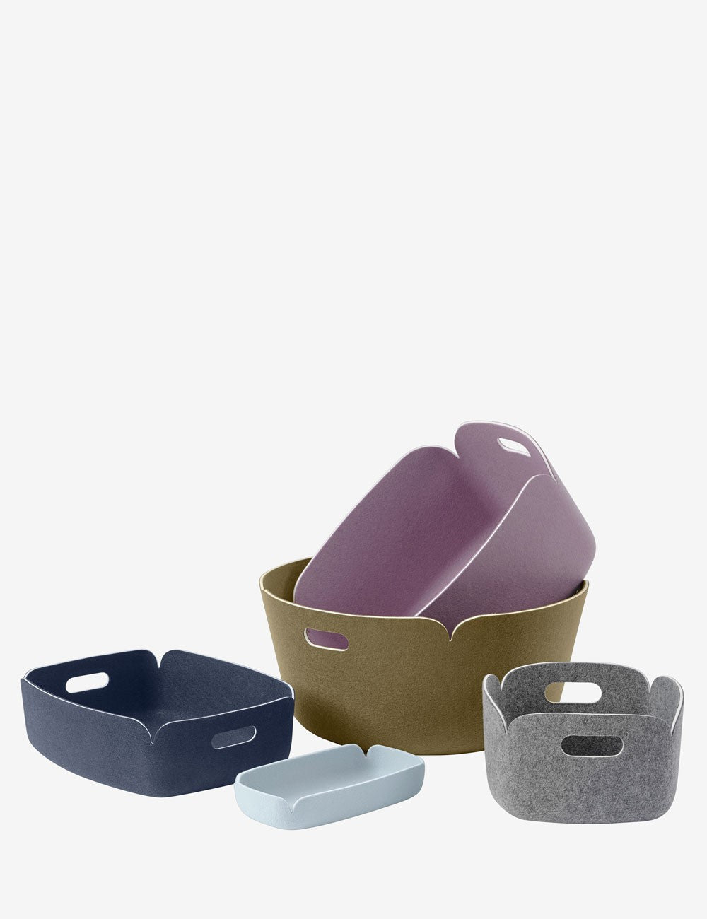 Restore, disegnato da Mika Tolvanen per Muuto, è composto da una serie di vassoi e cestini multifunzionali.