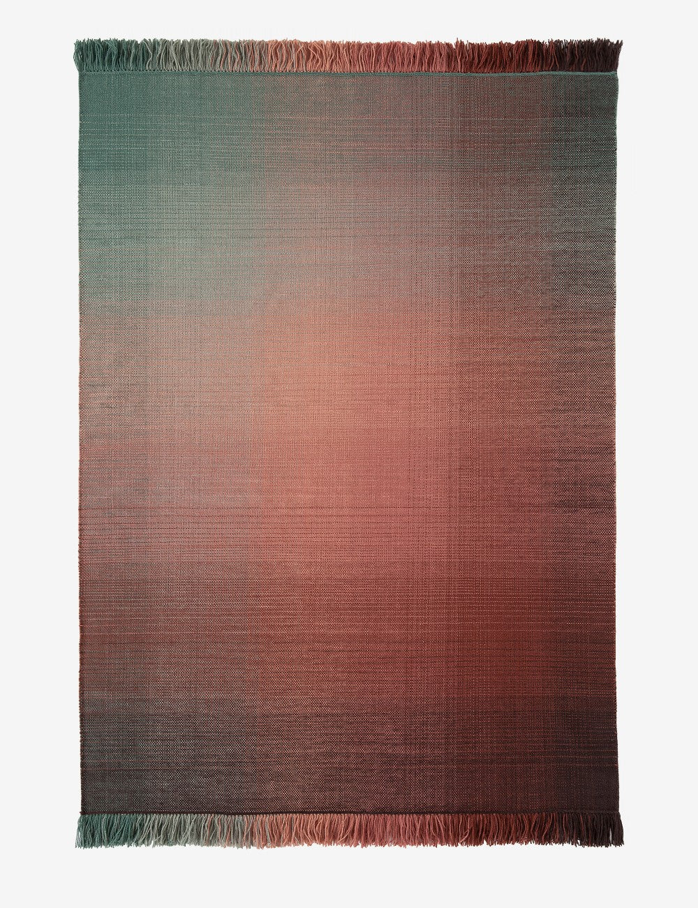 La squisita semplicità di Shade riflette un complesso processo tecnico per ottenere la densità, la regolarità e la fluidità dell'effetto desiderato. Ogni tappeto presenta due gradienti, uno verticale e uno orizzontale, su un unico piano, utilizzando armoniosamente sei tonalità di transizione.