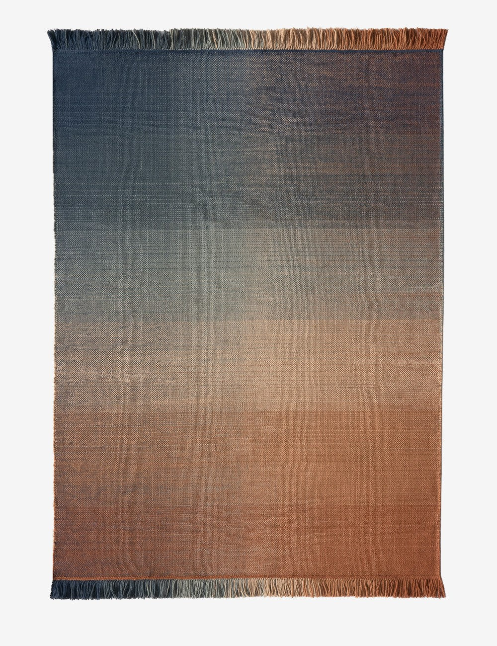 La squisita semplicità di Shade riflette un complesso processo tecnico per ottenere la densità, la regolarità e la fluidità dell'effetto desiderato. Ogni tappeto presenta due gradienti, uno verticale e uno orizzontale, su un unico piano, utilizzando armoniosamente sei tonalità di transizione.