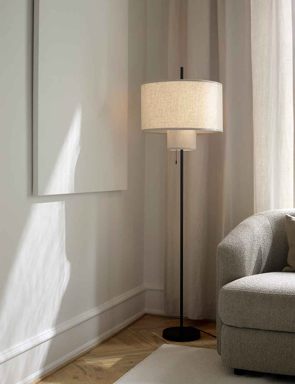 Esplorando una tipologia di illuminazione a gradini, le tonalità incrociate di Margin diffondono delicatamente la luce e creano immediatamente un'atmosfera calda e tattile.