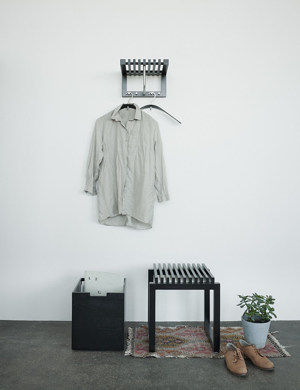 Ispirato al movimento Bauhaus, Cutter fu inizialmente creato per la mostra Walk the Plan. Con questo in mente, Niels Hvass creò un appendiabiti architettonico robusto e dalle linee rette.