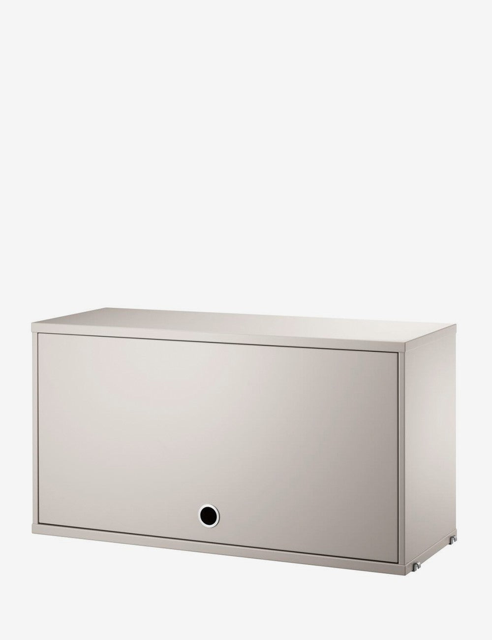 Il mobile con anta a battente amplia le possibilità di contenimento della serie String System.