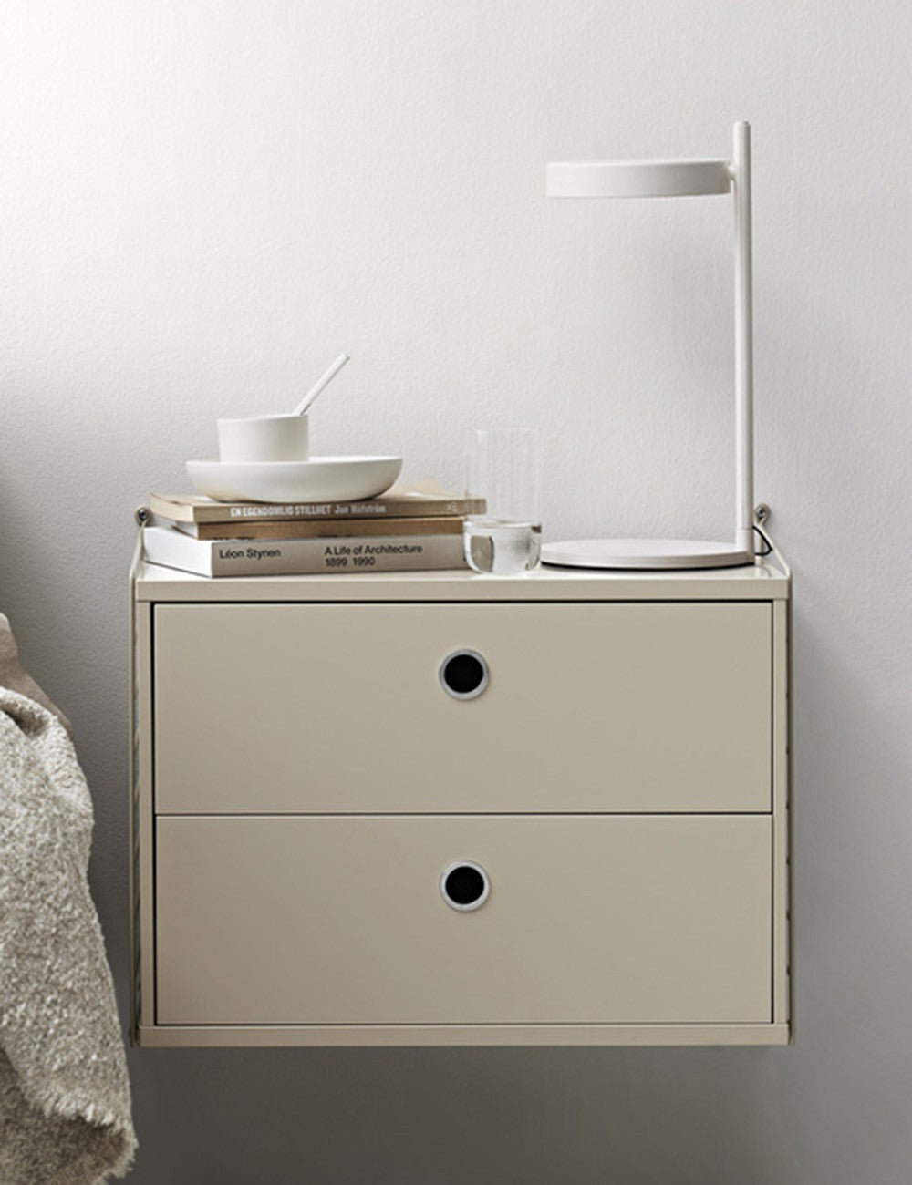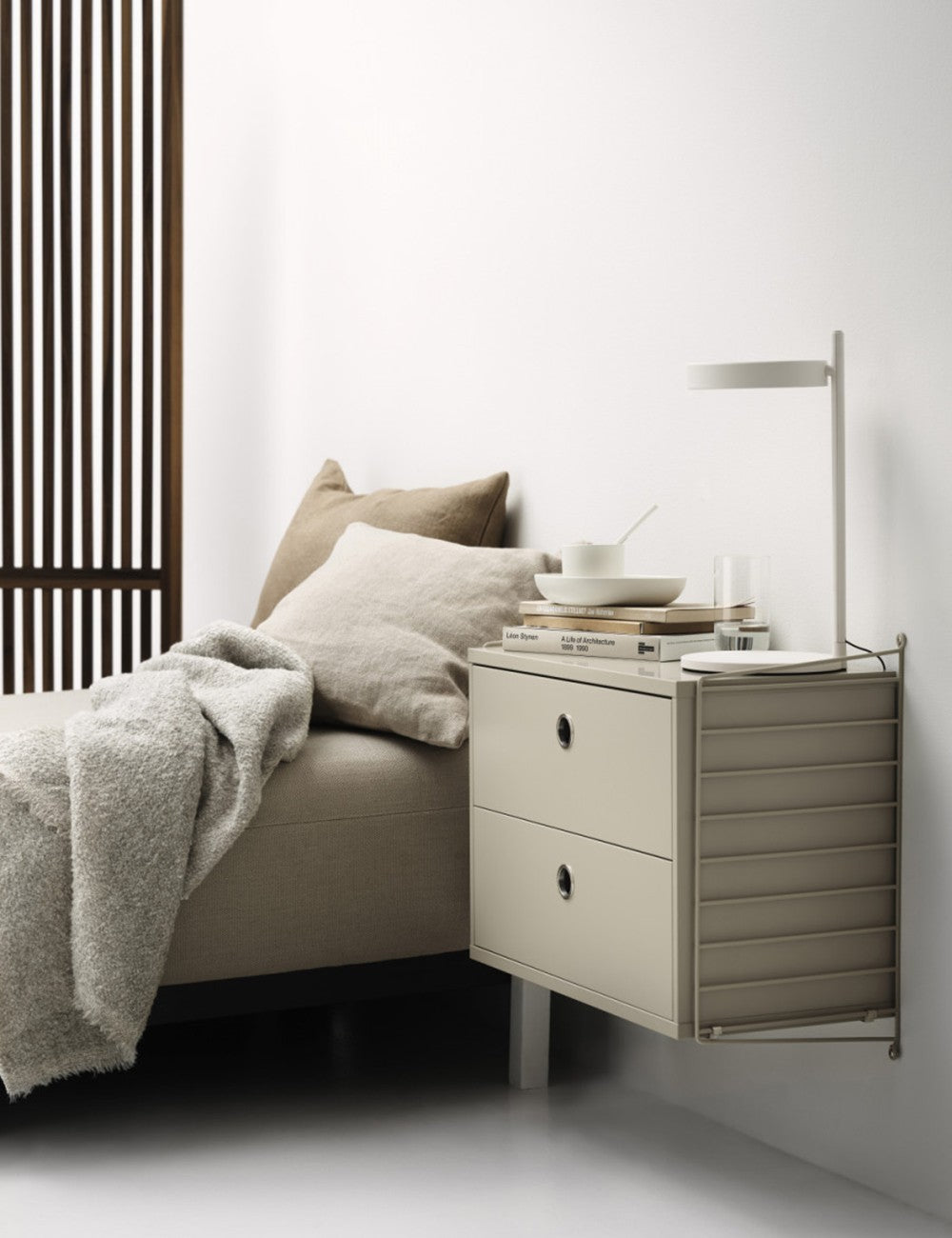 La cassettiera String amplia le possibilità di contenimento della serie String System.