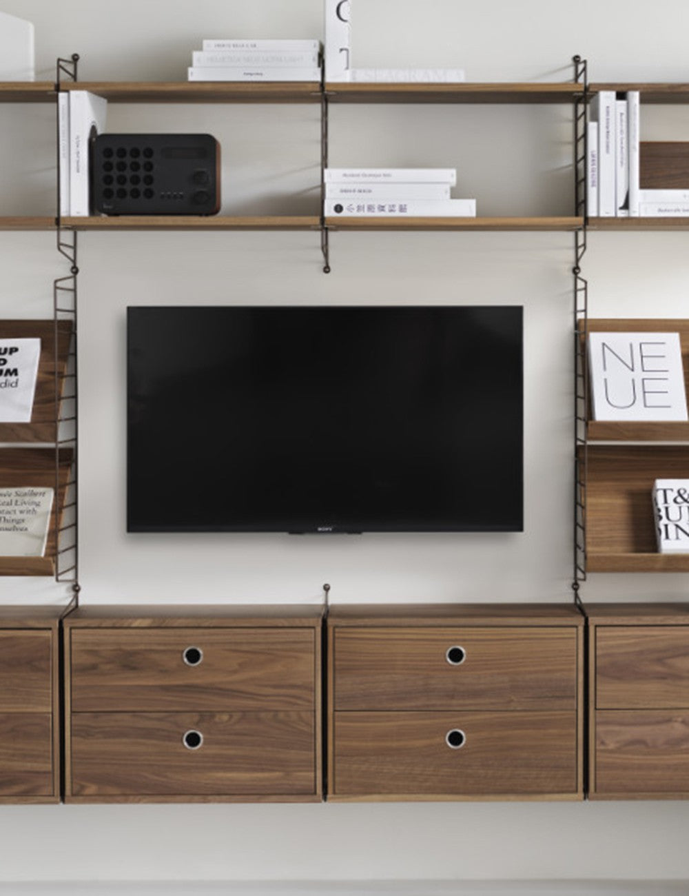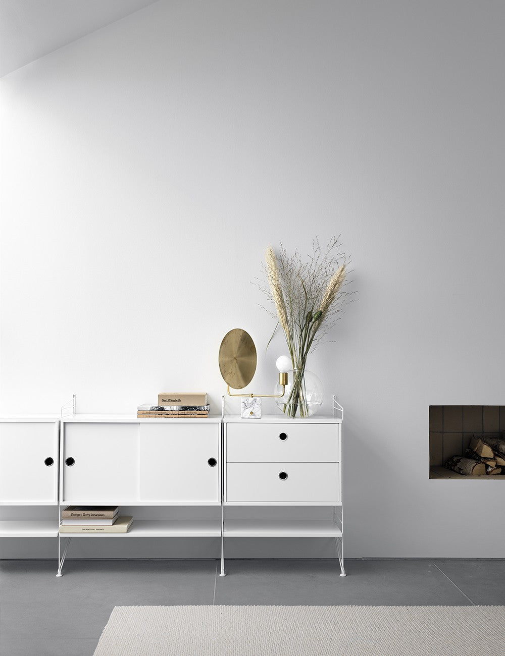 Algunas cosas se asocian tan fuertemente con un momento específico que en realidad terminan siendo atemporales. Esa es una forma de resumir la contribución de Nisse y Kajsa Strinning a la historia del diseño escandinavo. La editorial sueca Bonnier se dio cuenta que la mayoría de los hogares no estaban amueblados adecuadamente, prestando atención a las estanterías, lo que les dificultaba mucho vender libros. En 1949 anunciaron un concurso en el que pedían un diseño para un estante con algunos criterios. El estante tenía que ser asequible, fácil de enviar e, igualmente, fácil de montar. Naturalmente, String se convirtió en una solución muy común en los hogares suecos durante la década de 1950 y 1960. Durante varios años, la producción de String fue inexistente. No fue hasta el 2004 cuando la marca revivió con un nuevo concepto adaptado a las necesidades de hoy en día. Nisse Strinning contribuyo al renacimiento de su propia marca con un nuevo diseño llamado String Pocket que se convirtió inmediatamente en un éxito y sigue siendo uno de los productos estrella de la marca en la actualidad.