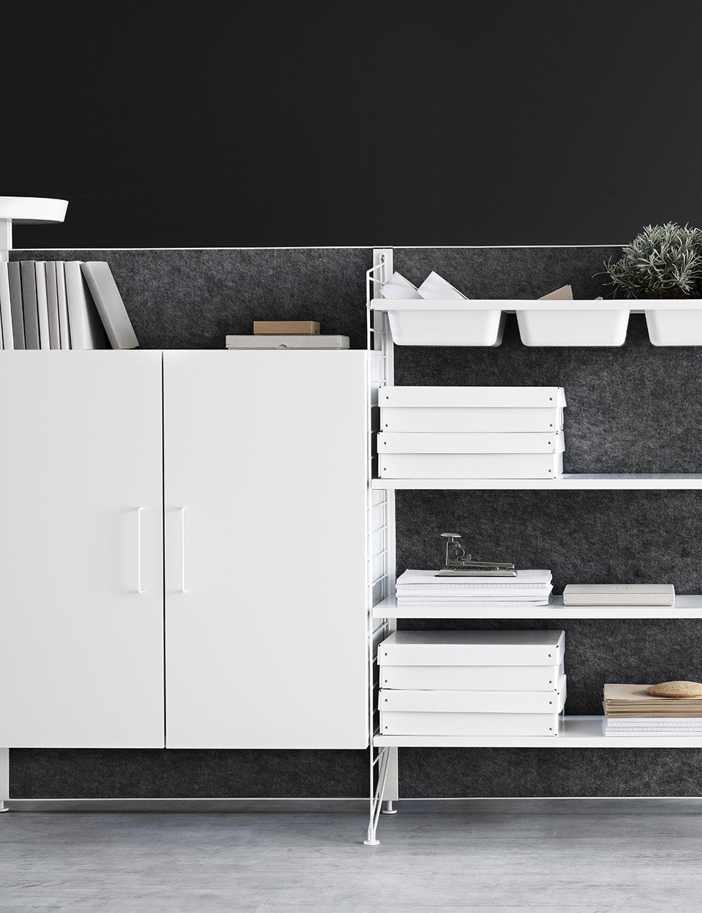 Il mobile portadocumenti String amplia le possibilità di archiviazione della serie String System.