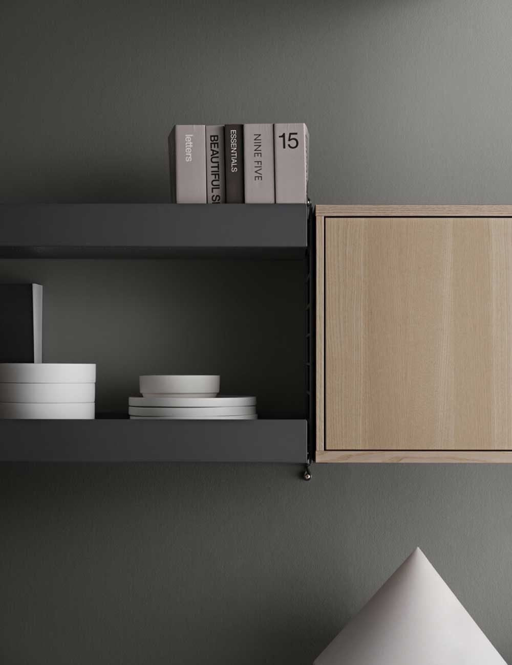 Algunas cosas se asocian tan fuertemente con un momento específico que en realidad terminan siendo atemporales. Esa es una forma de resumir la contribución de Nisse y Kajsa Strinning a la historia del diseño escandinavo. La editorial sueca Bonnier se dio cuenta que la mayoría de los hogares no estaban amueblados adecuadamente, prestando atención a las estanterías, lo que les dificultaba mucho vender libros. En 1949 anunciaron un concurso en el que pedían un diseño para un estante con algunos criterios. El estante tenía que ser asequible, fácil de enviar e, igualmente, fácil de montar. Naturalmente, String se convirtió en una solución muy común en los hogares suecos durante la década de 1950 y 1960. Durante varios años, la producción de String fue inexistente. No fue hasta el 2004 cuando la marca revivió con un nuevo concepto adaptado a las necesidades de hoy en día. Nisse Strinning contribuyo al renacimiento de su propia marca con un nuevo diseño llamado String Pocket que se convirtió inmediatamente en un éxito y sigue siendo uno de los productos estrella de la marca en la actualidad.