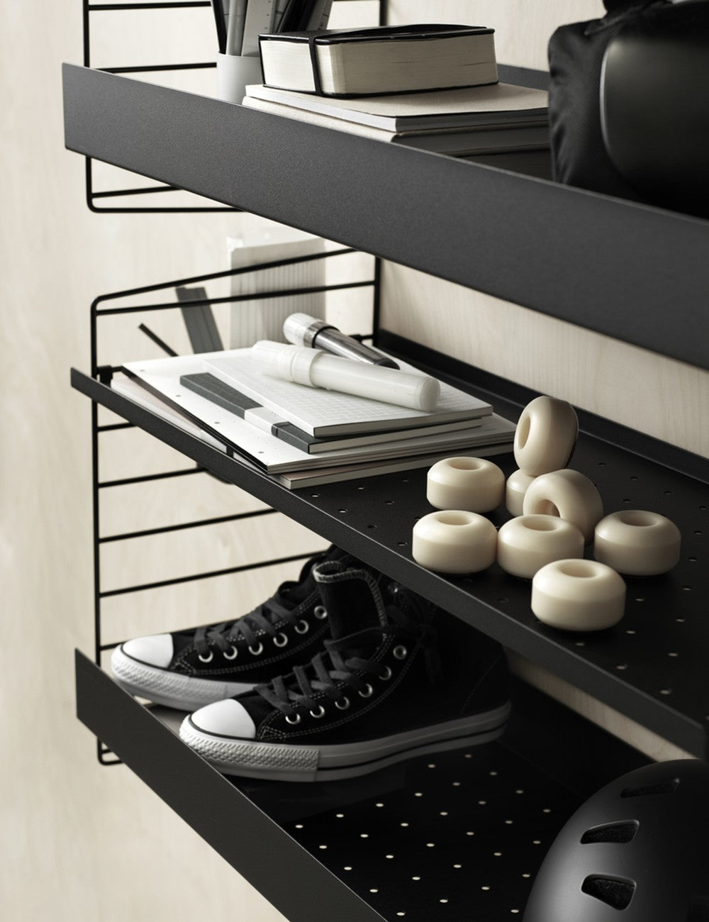 Gli scaffali String System sono progettati per essere spostati facilmente e adattarsi in ogni momento alle tue esigenze.