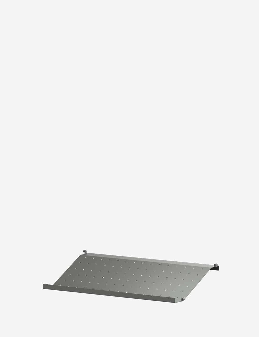 La scarpiera è disponibile in due larghezze, 58 e 78 cm, entrambe con profondità 30 cm, e si adatta ai pannelli metallici String System.