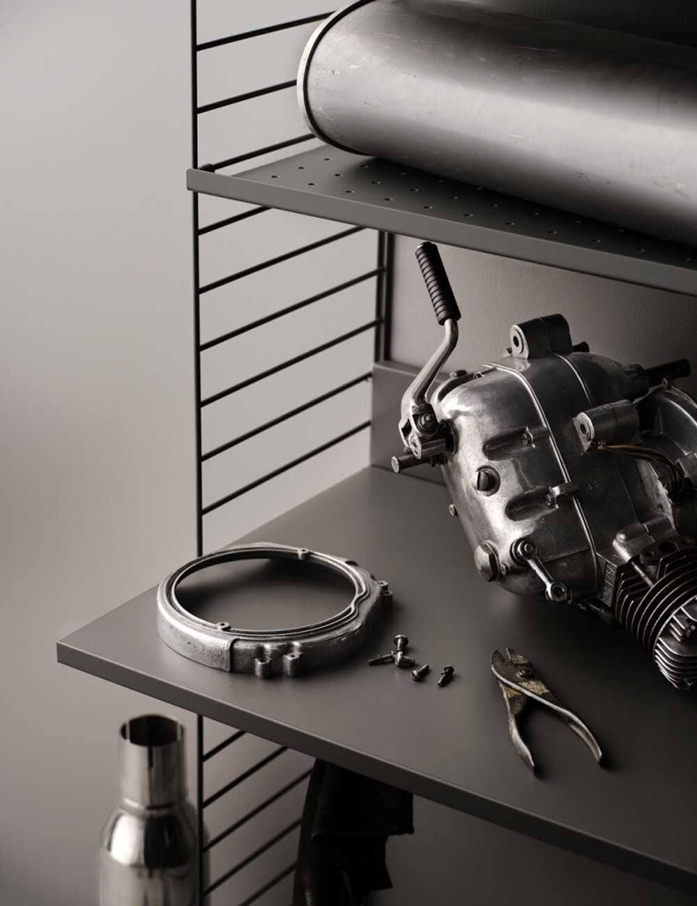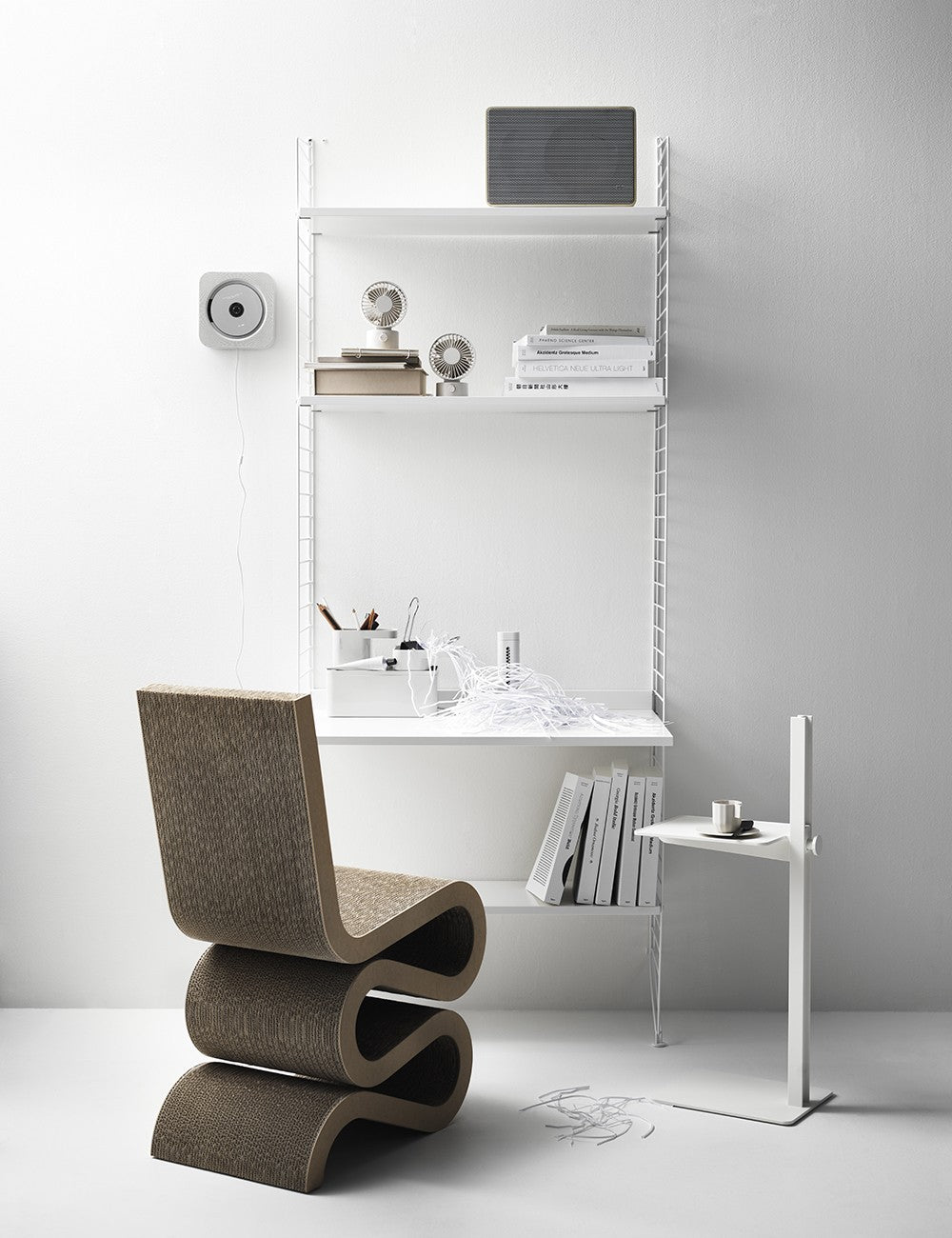 Algunas cosas se asocian tan fuertemente con un momento específico que en realidad terminan siendo atemporales. Esa es una forma de resumir la contribución de Nisse y Kajsa Strinning a la historia del diseño escandinavo. La editorial sueca Bonnier se dio cuenta que la mayoría de los hogares no estaban amueblados adecuadamente, prestando atención a las estanterías, lo que les dificultaba mucho vender libros. En 1949 anunciaron un concurso en el que pedían un diseño para un estante con algunos criterios. El estante tenía que ser asequible, fácil de enviar e, igualmente, fácil de montar. Naturalmente, String se convirtió en una solución muy común en los hogares suecos durante la década de 1950 y 1960. Durante varios años, la producción de String fue inexistente. No fue hasta el 2004 cuando la marca revivió con un nuevo concepto adaptado a las necesidades de hoy en día. Nisse Strinning contribuyo al renacimiento de su propia marca con un nuevo diseño llamado String Pocket que se convirtió inmediatamente en un éxito y sigue siendo uno de los productos estrella de la marca en la actualidad.