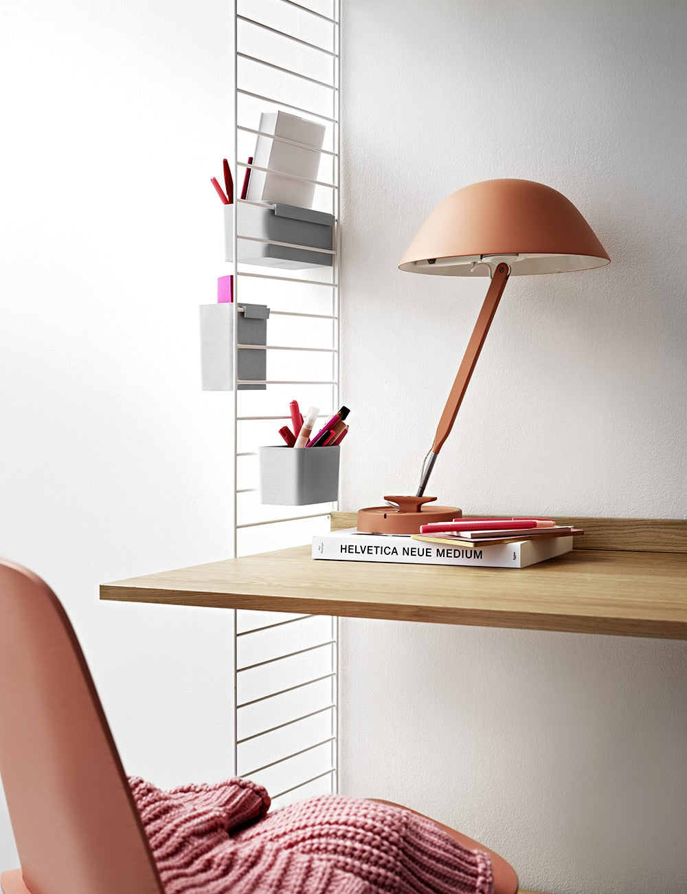 La scrivania String è disponibile in vari colori.
