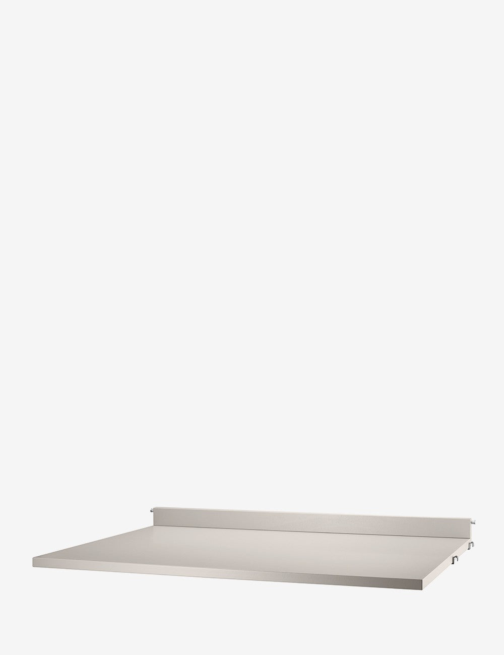 La scrivania è disponibile nella larghezza di 78 cm e si adatta ai pannelli metallici String System profondi 30 cm.