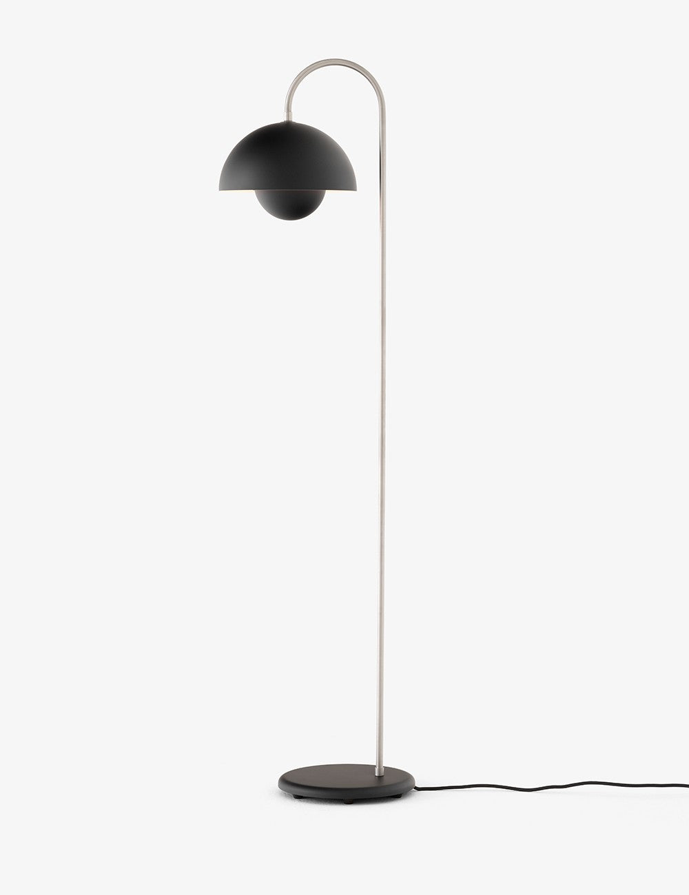 Flowerpot VP12, progettata originariamente nel 1969 da Verner Panton, è una lampada da terra con due paralumi disposti parallelamente che riflettono la sorgente luminosa l'uno verso l'altro, creando un'illuminazione diffusa.