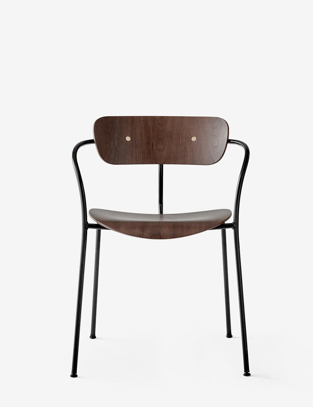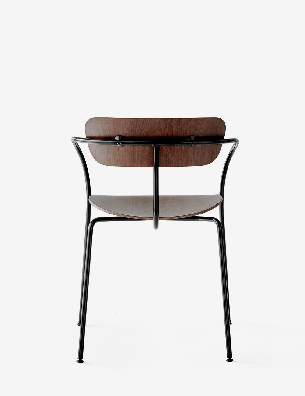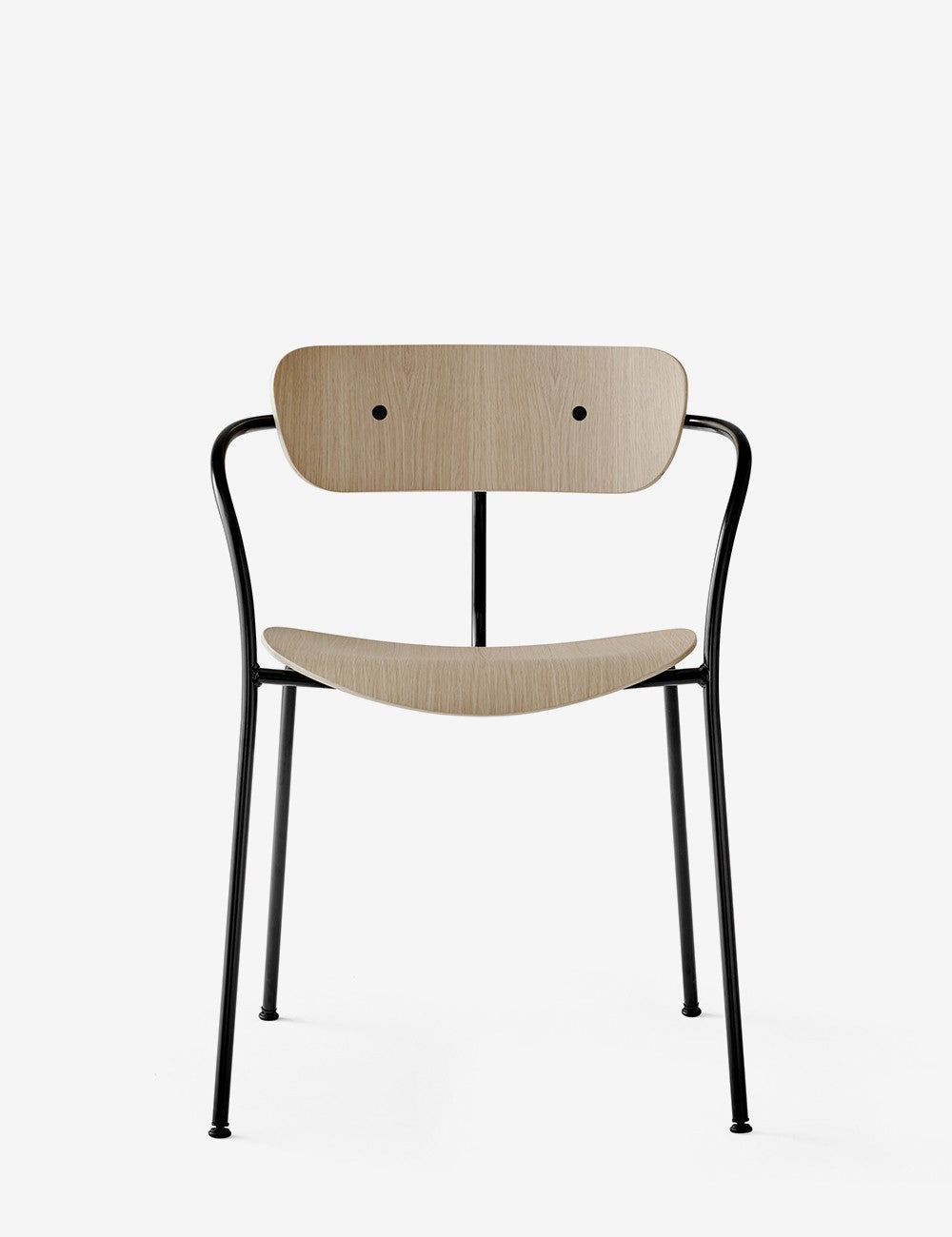 Pavilion è realizzato con una struttura in tubi di acciaio curvati e un sedile e uno schienale in legno impiallacciato stampato, rifiniti con vernice PU per proteggerli dalle macchie.