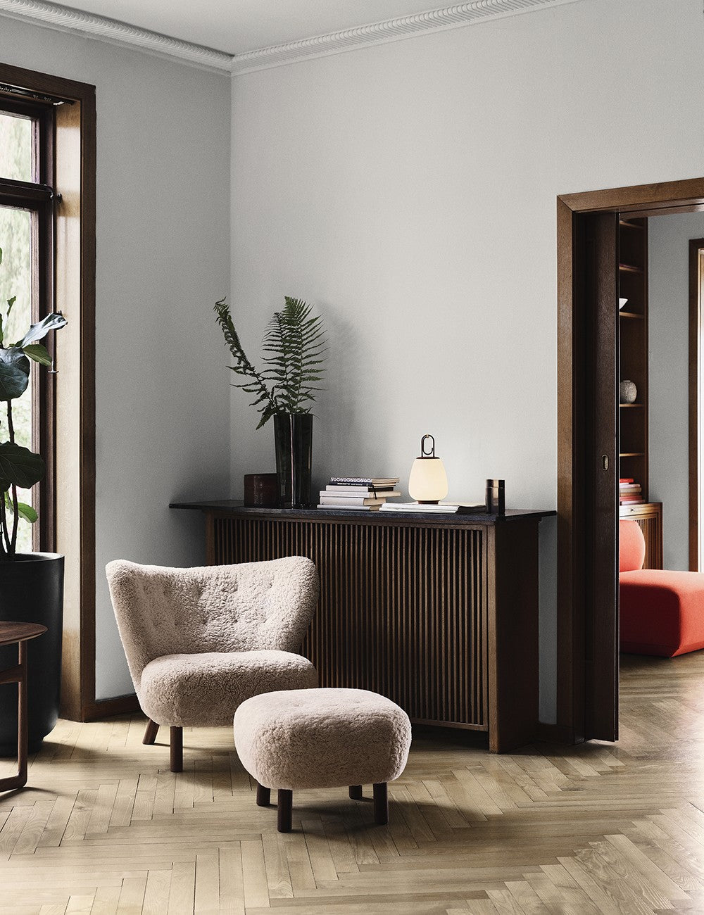 Progettato da &Tradition, Pouf nasce dall'esigenza di creare l'abbinamento perfetto con l'iconica poltrona Little Petra di Viggo Boesen.