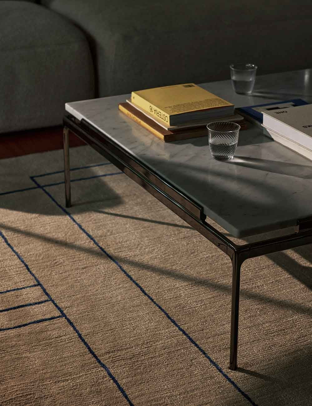 Da Sett, marmo, vetro e cromo scuro si uniscono in una suggestiva mise en place, che riflette il linguaggio di design eclettico di Luca Nichetto e la sua affinità per la materialità.