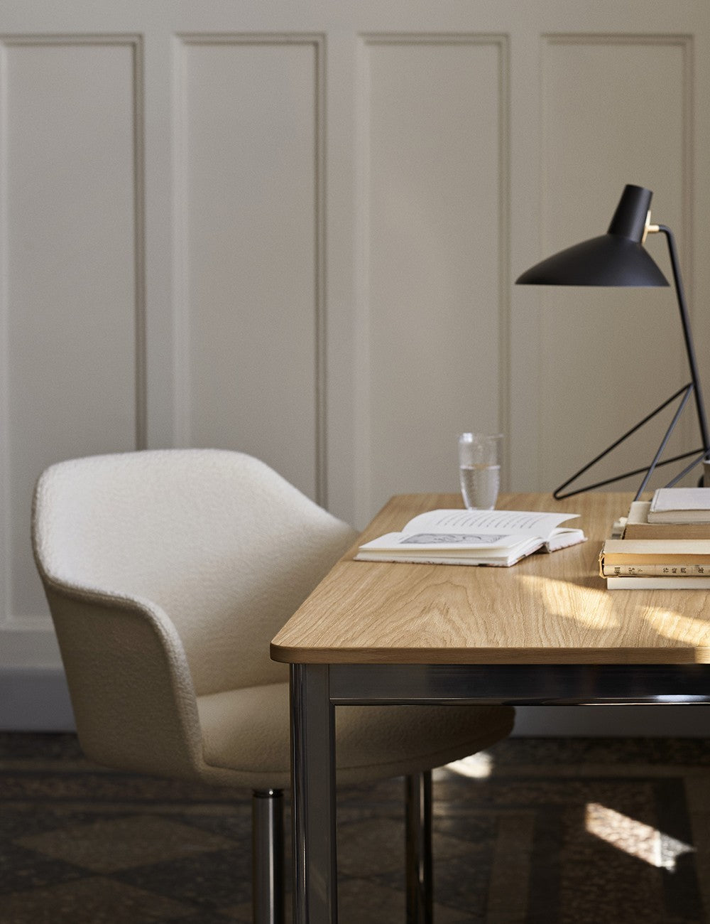 Con l'estetica pulita e minimalista che è il segno distintivo di tutti i design di Hvidt & Mølgaard, questa lampada raggiunge un delicato equilibrio tra la semplicità assoluta del suo design e la morbidezza infusa dai bordi curvi della sua base.