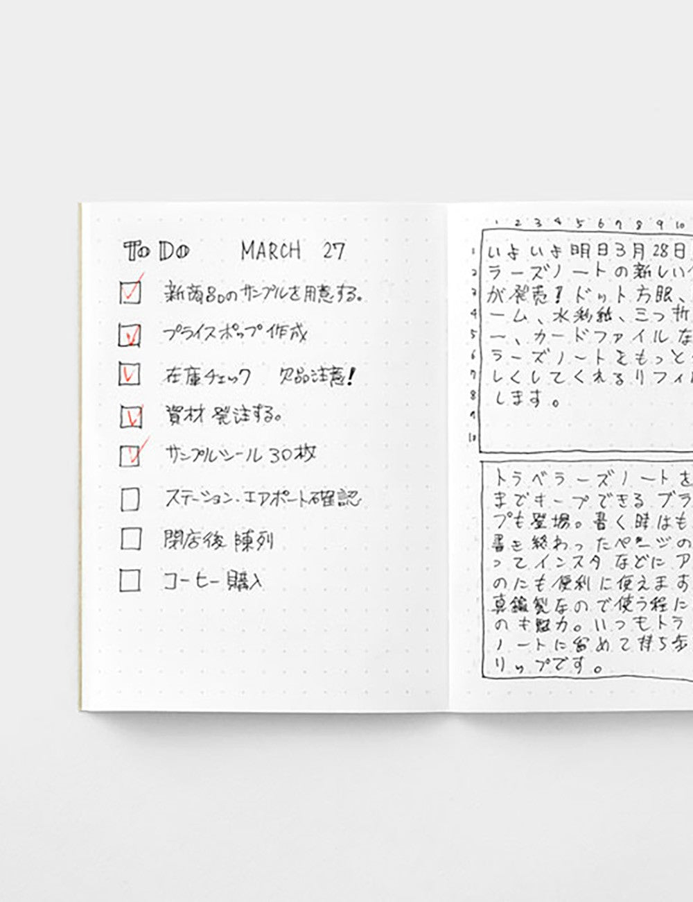 Questo taccuino è stato progettato per sostituire il Traveler's Notebook. La carta utilizzata è MD Paper.