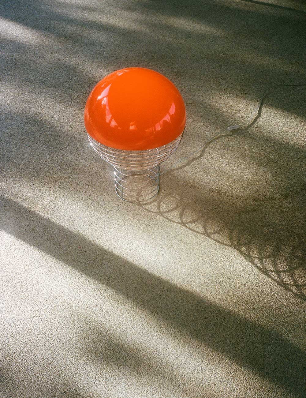 La lampada da tavolo Wire è caratterizzata da una struttura in filo d'acciaio cromato che si allarga nella parte superiore per sostenere un paralume semisferico in plastica arancione. La struttura aperta conferisce un aspetto distintivo, leggero e discreto, esaltandone il carattere scultoreo. Nella sua versione piccola, mantiene lo stile industriale ed è perfetta per una scrivania o un comodino. Il tocco di colore completa il design e sottolinea il DNA Panton. Disponibile in varie dimensioni e colori per adattarsi a diversi spazi e stili.