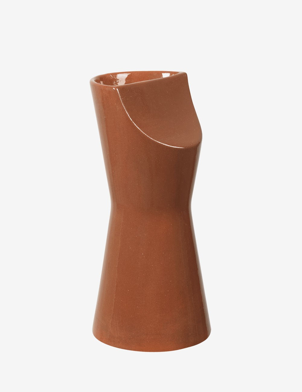 La jarra Sola está fabricada en terracota y acabada con un esmalte transparente que acentúa su calidez natural.