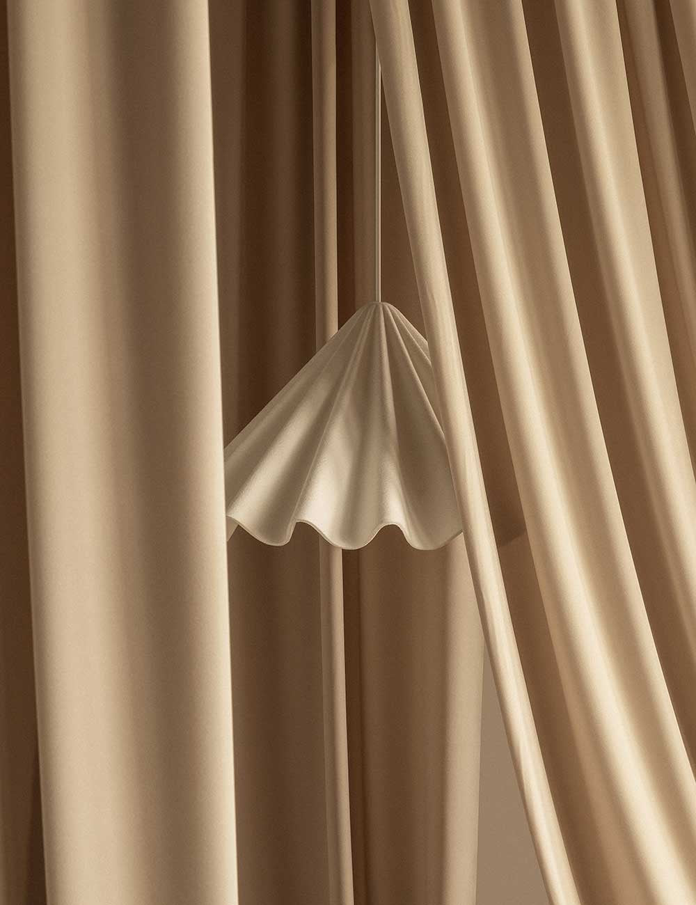 Exquisita, pero con un toque divertido, esta expresiva lámpara toma su inspiración del vuelo de la falda plisada de una bailarina en pleno giro, una idea que crece y encuentra su forma definitiva, precisa y ordenada, pero suave y fluida.