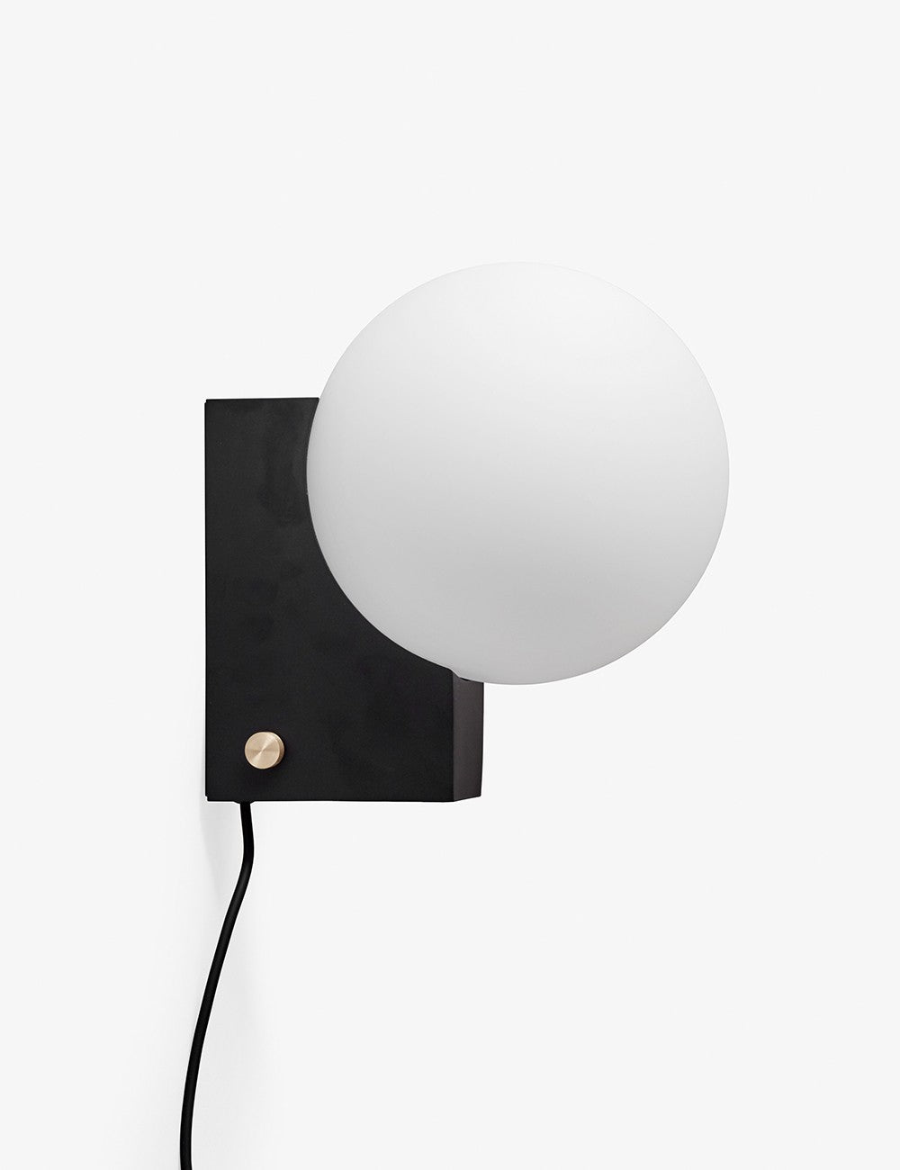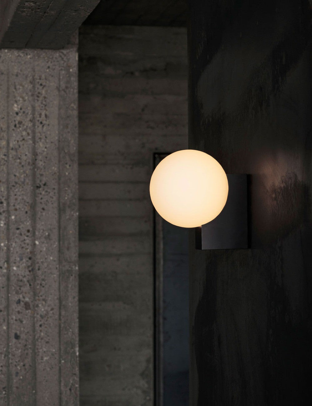 La pantalla de Jurney se realiza en cristal soplado opalino e incluye una bombilla integrada LED. En la base, un interruptor de latón permite que regulemos la intensidad y temperatura de la luz.