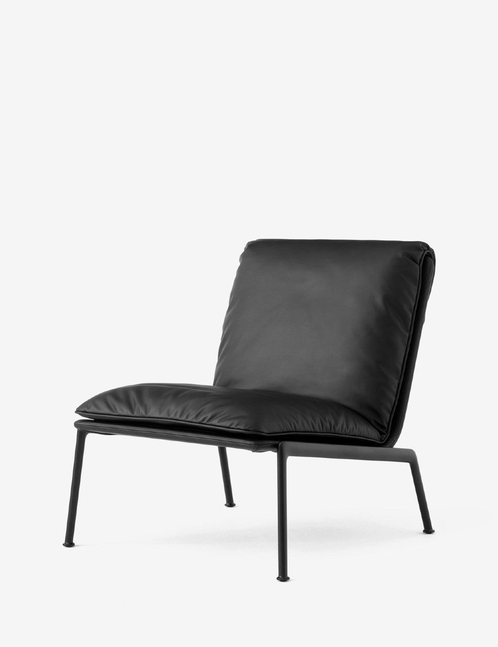 Compuesta por cinco diseños, la colección Muno incluye sillones con respaldo alto y bajo, con o sin brazos, y su correspondiente reposapiés. La base de aluminio fundido de cada diseño puede elegirse en cromo oscuro o con un cálido recubrimiento de polvo negro.