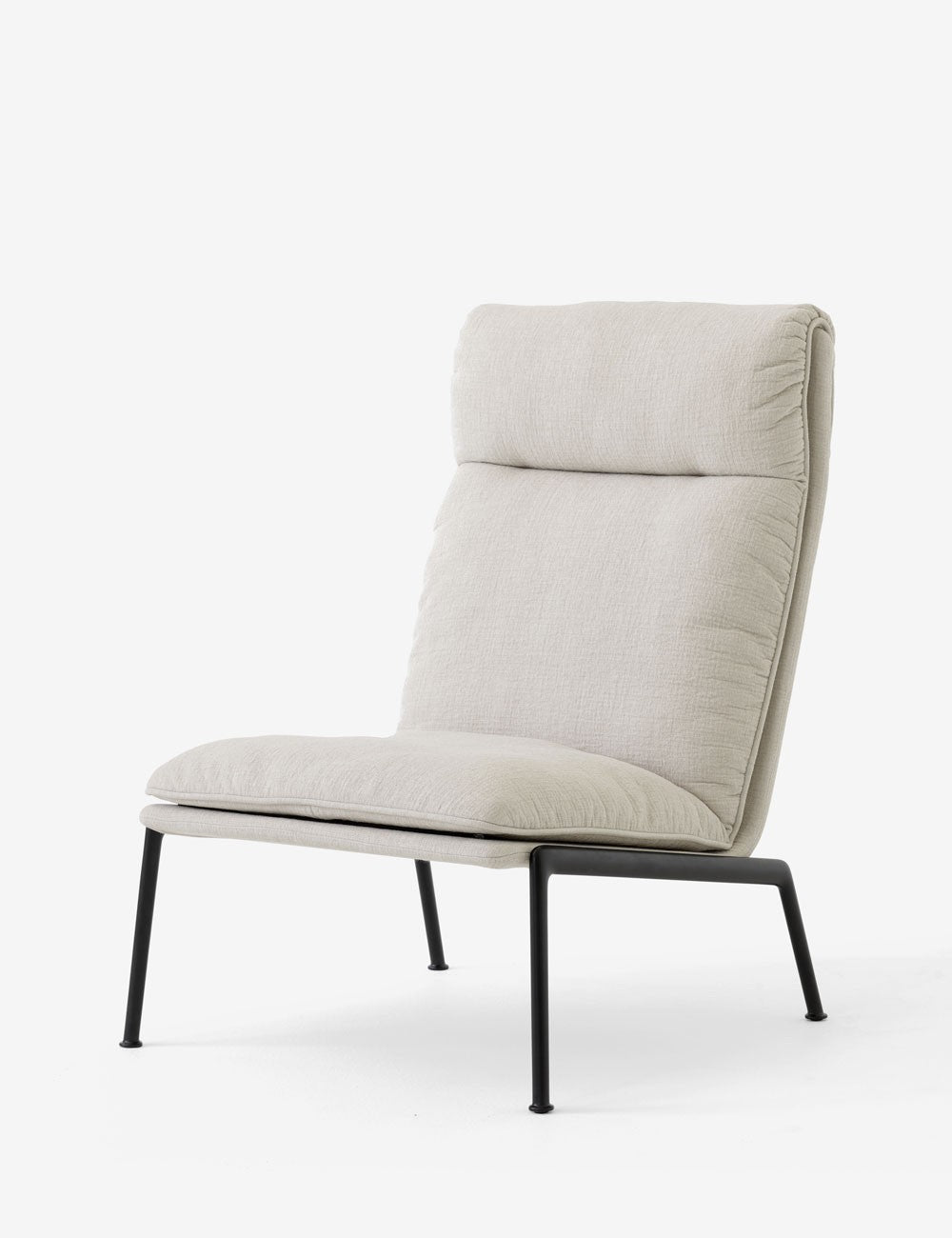 Compuesta por cinco diseños, la colección Muno incluye sillones con respaldo alto y bajo, con o sin brazos, y su correspondiente reposapiés. La base de aluminio fundido de cada diseño puede elegirse en cromo oscuro o con un cálido recubrimiento de polvo negro.